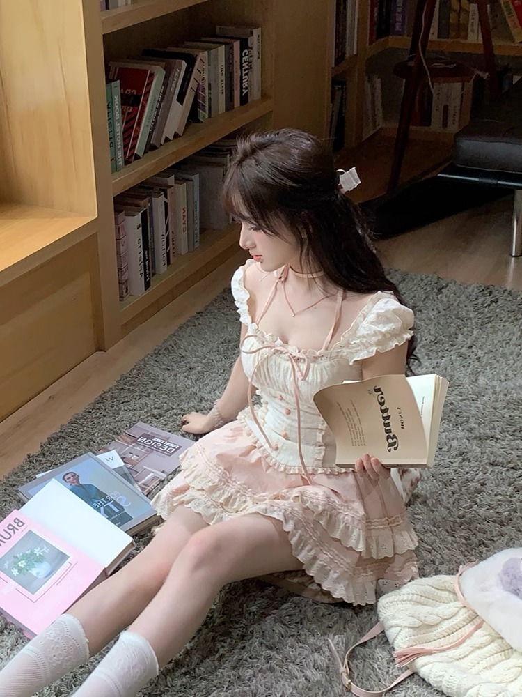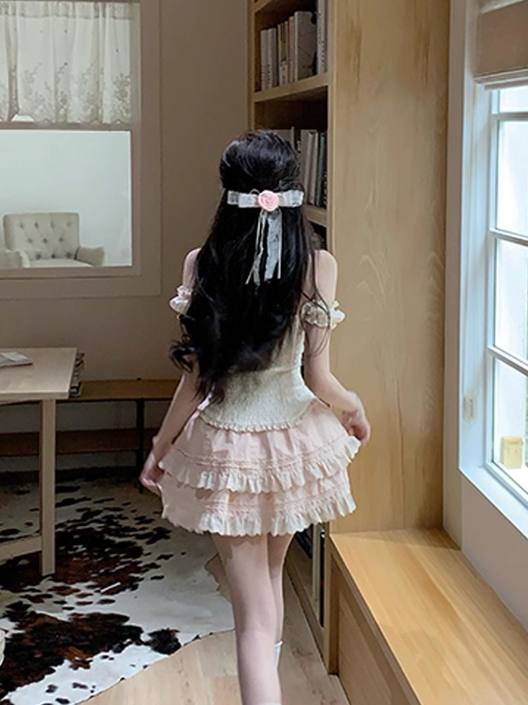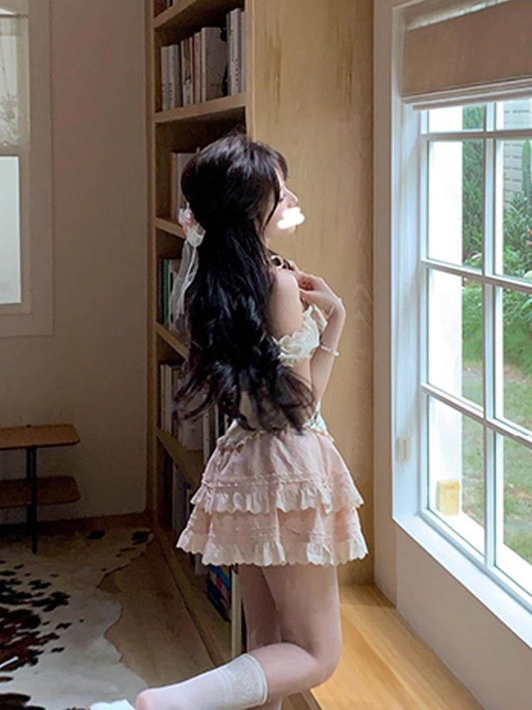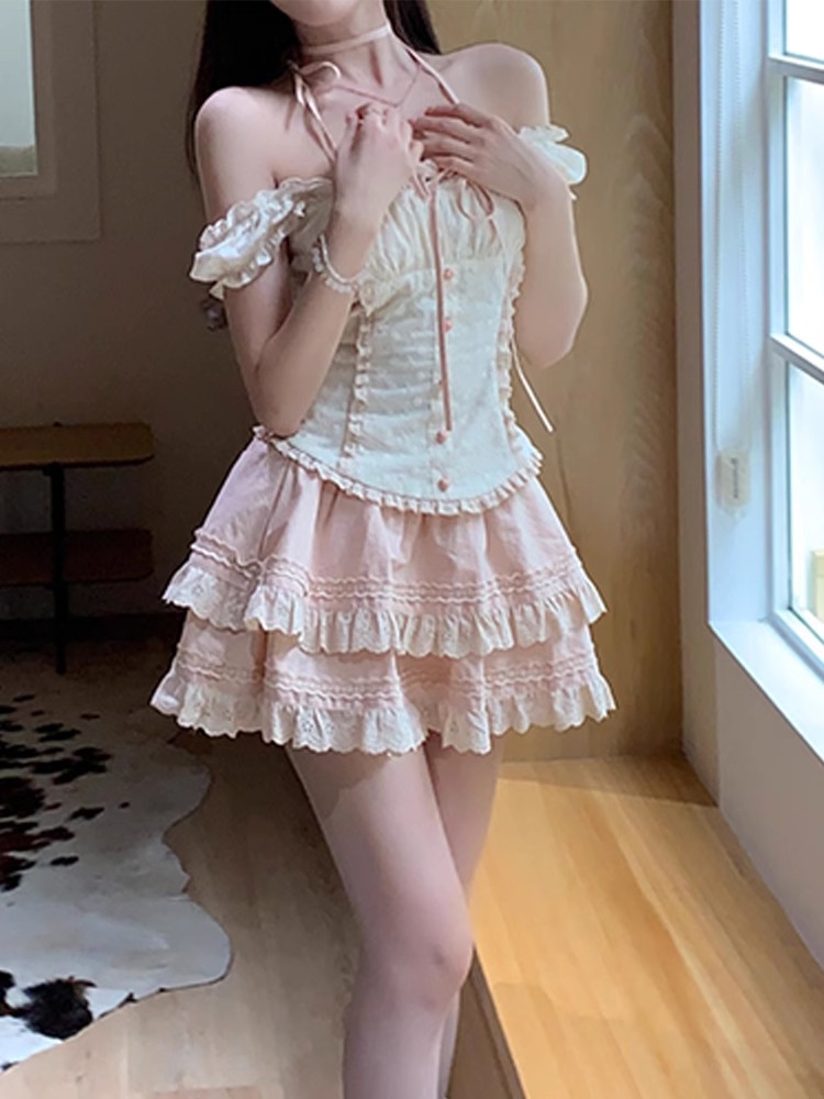 프랑스 스타일 스위트 레이스 슬림 핏 최고의 여성 여름 부드러운 욕망 스타일 세트 스커트 투피스 세트