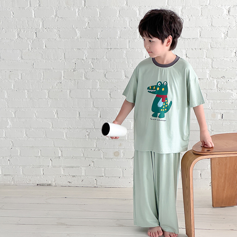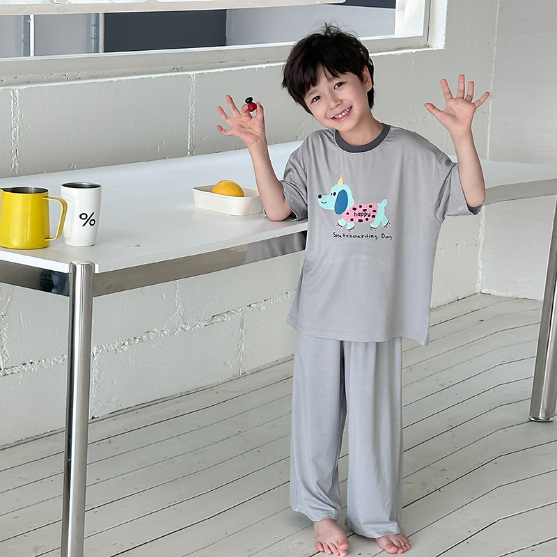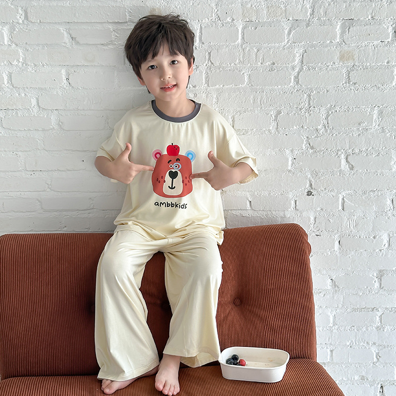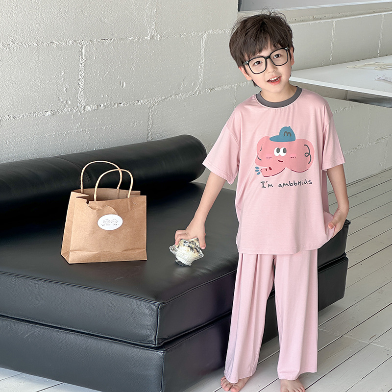Emo Beibei 2025 여름 어린이 높은 탄성 모달 잠옷 세트 어린이 만화 피부 친화적 인 홈 에어컨 옷스토어 가기
