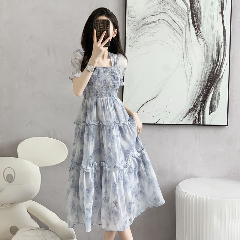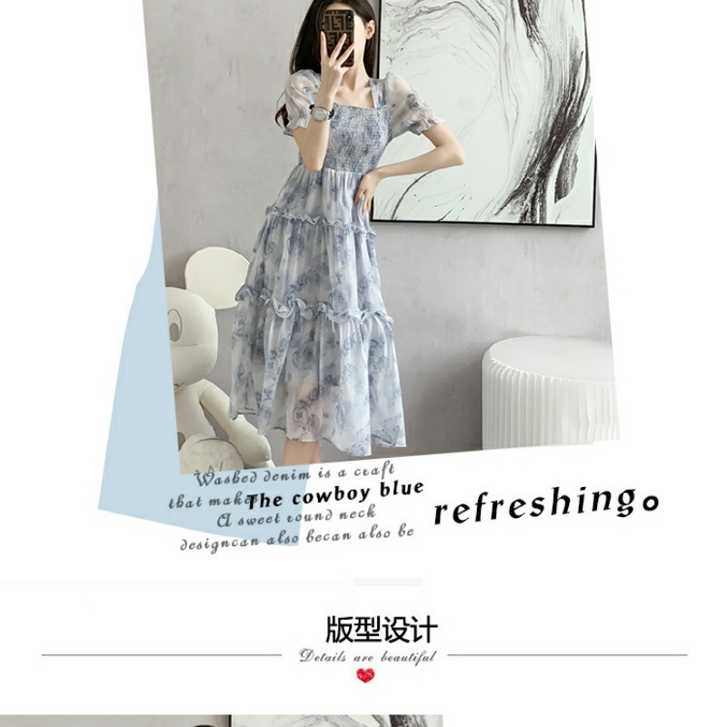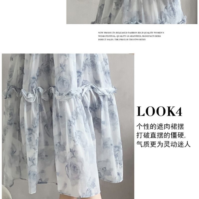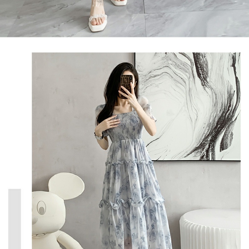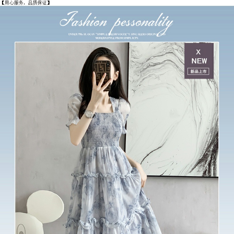 차 차 스타일 꽃 원피스 여성 여름 2025 새로운 프랑스 스타일 허리 긴 원피스 요정 스타일 슈퍼 요정 스타일스토어 가기
