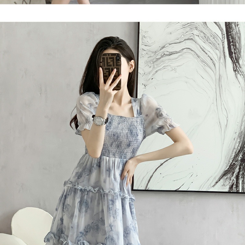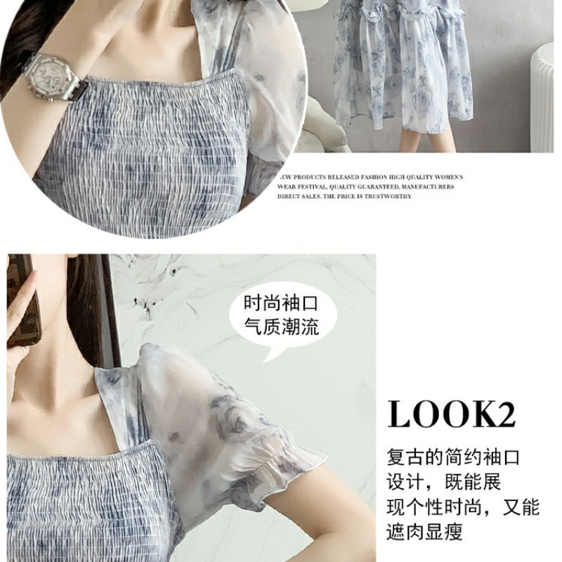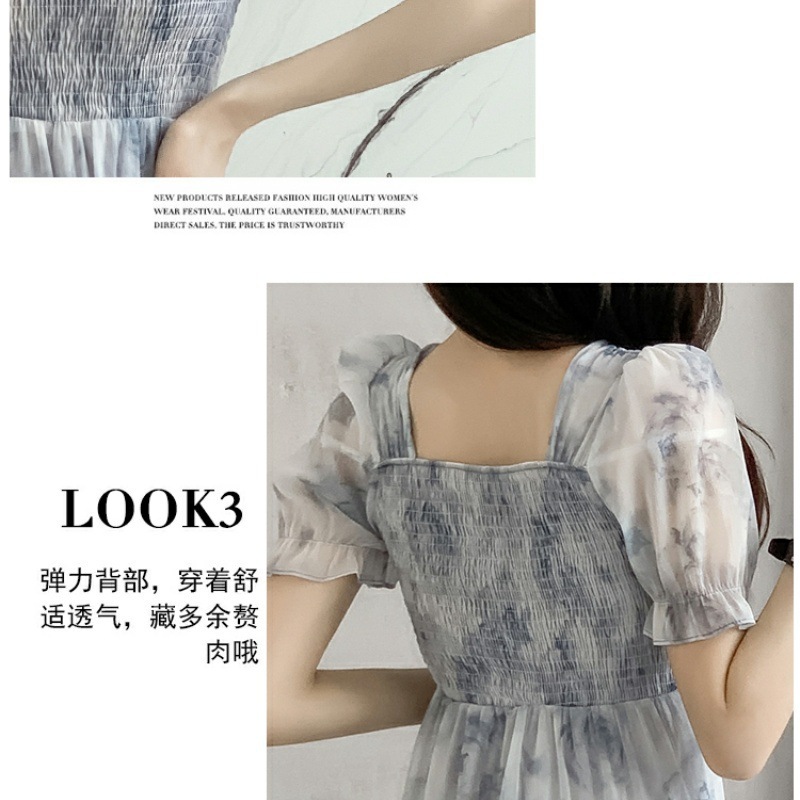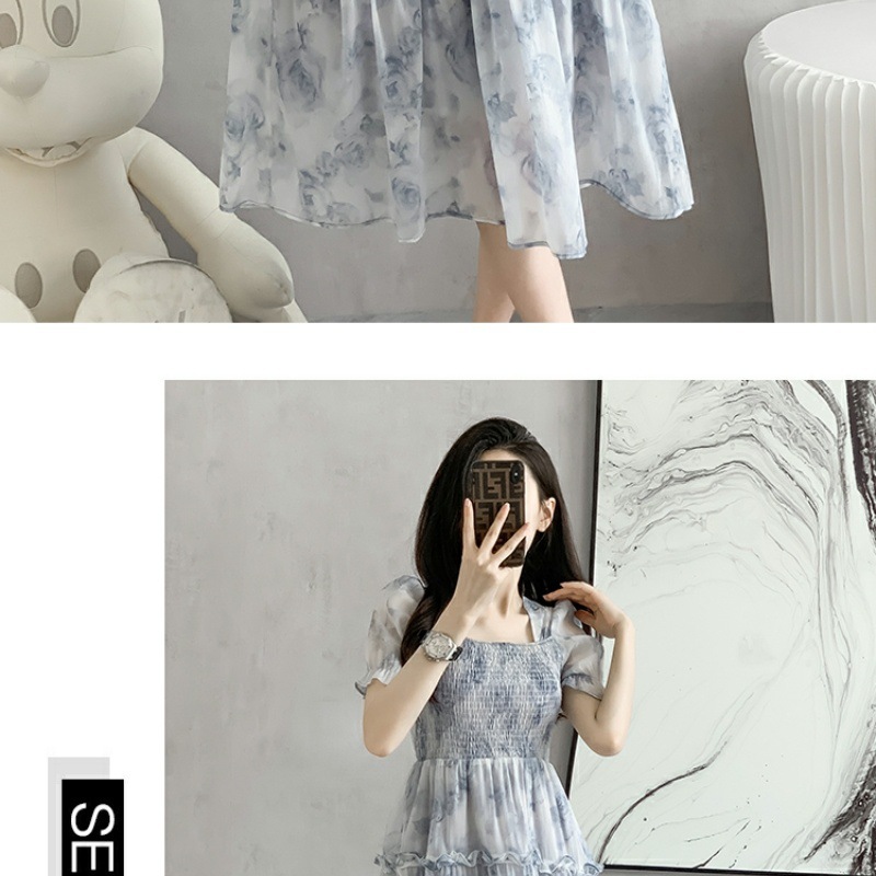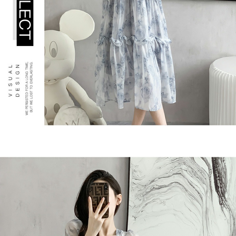 차 차 스타일 꽃 원피스 여성 여름 2025 새로운 프랑스 스타일 허리 긴 원피스 요정 스타일 슈퍼 요정 스타일스토어 가기