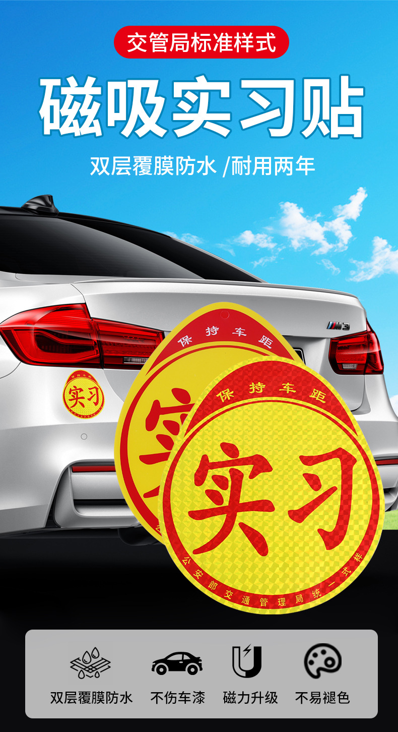 초보자를 위한 실습 자동차 스티커, 도로 반사 자석 자동차 스티커, 여성 운전자를 위한 창의적인 실습 기간 초대형 자기 표시스토어 가기