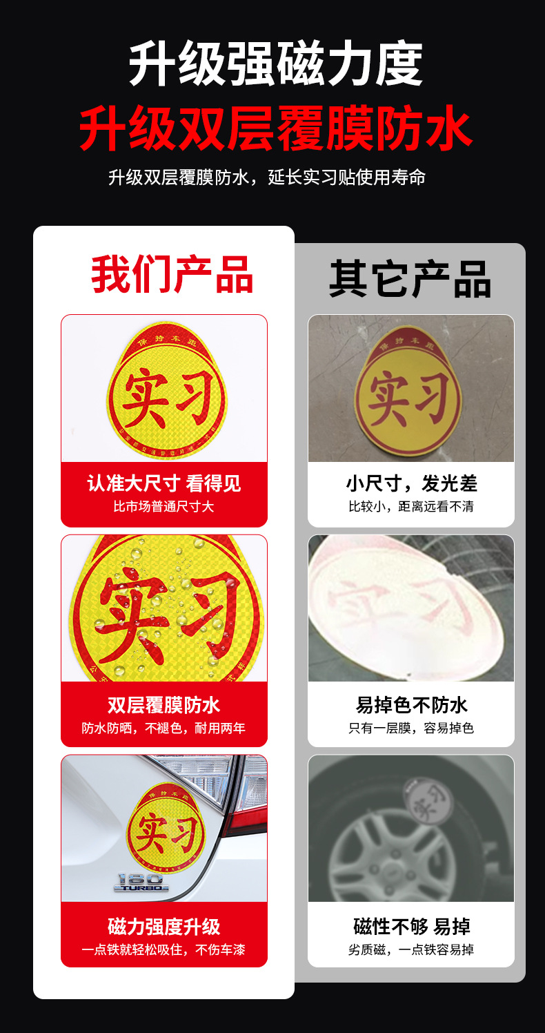 초보자를 위한 실습 자동차 스티커, 도로 반사 자석 자동차 스티커, 여성 운전자를 위한 창의적인 실습 기간 초대형 자기 표시