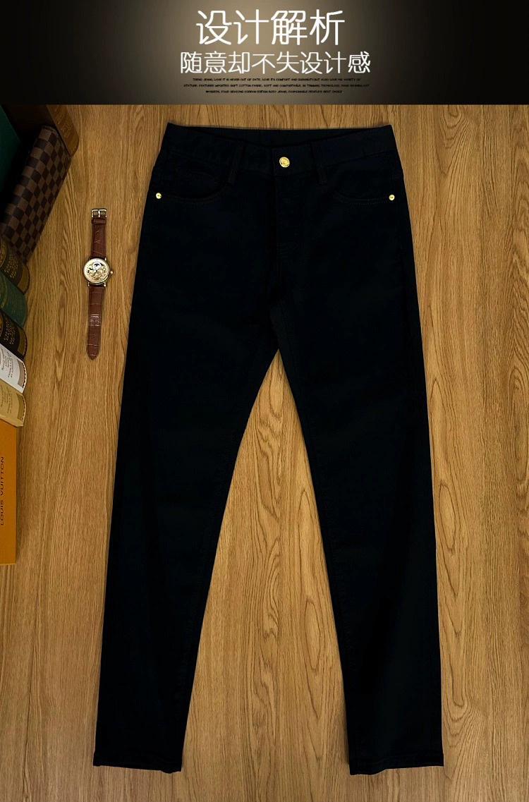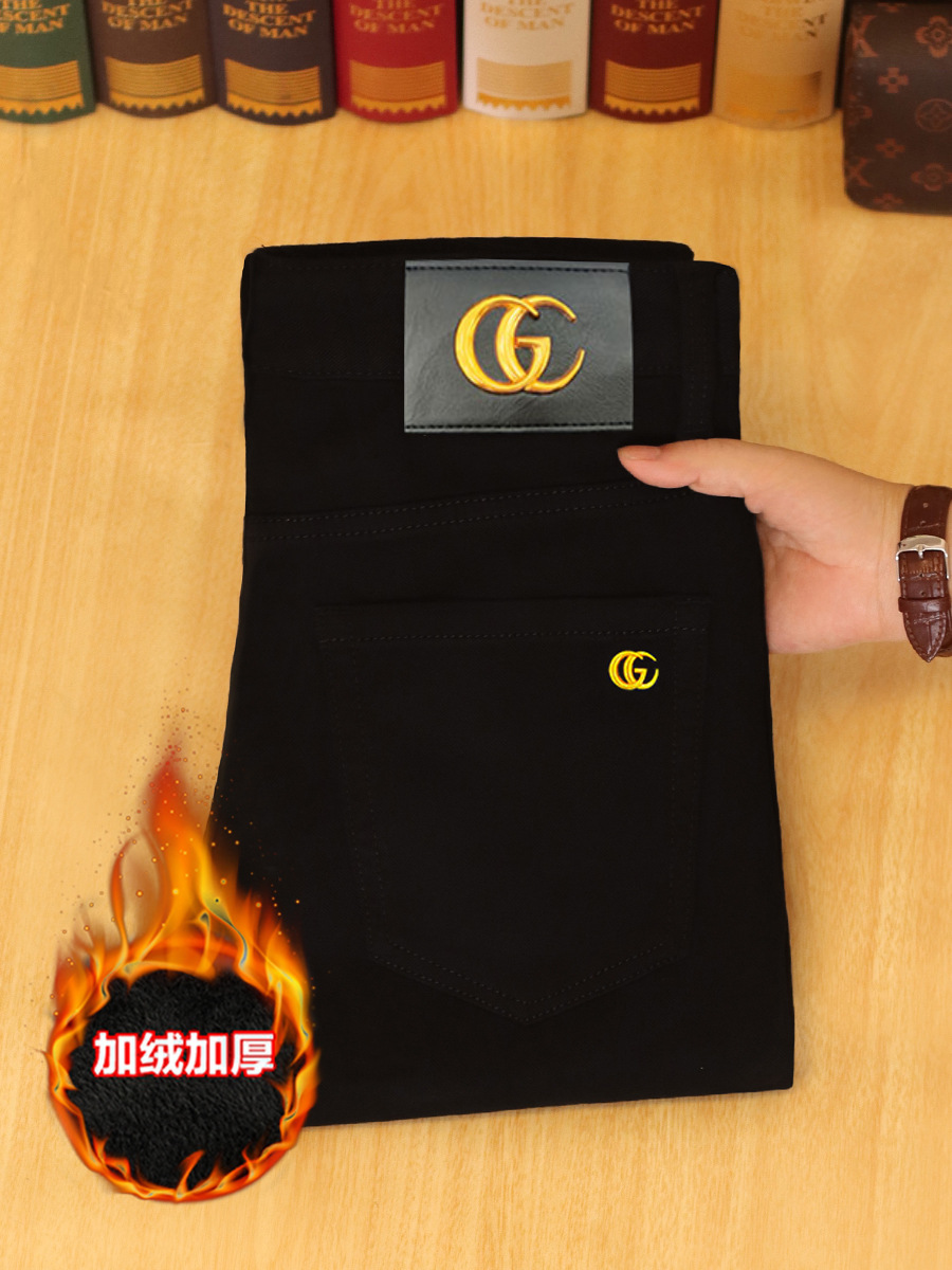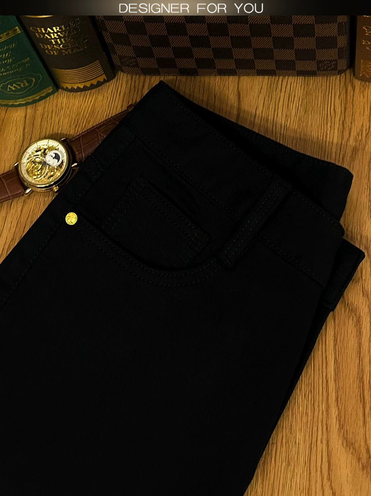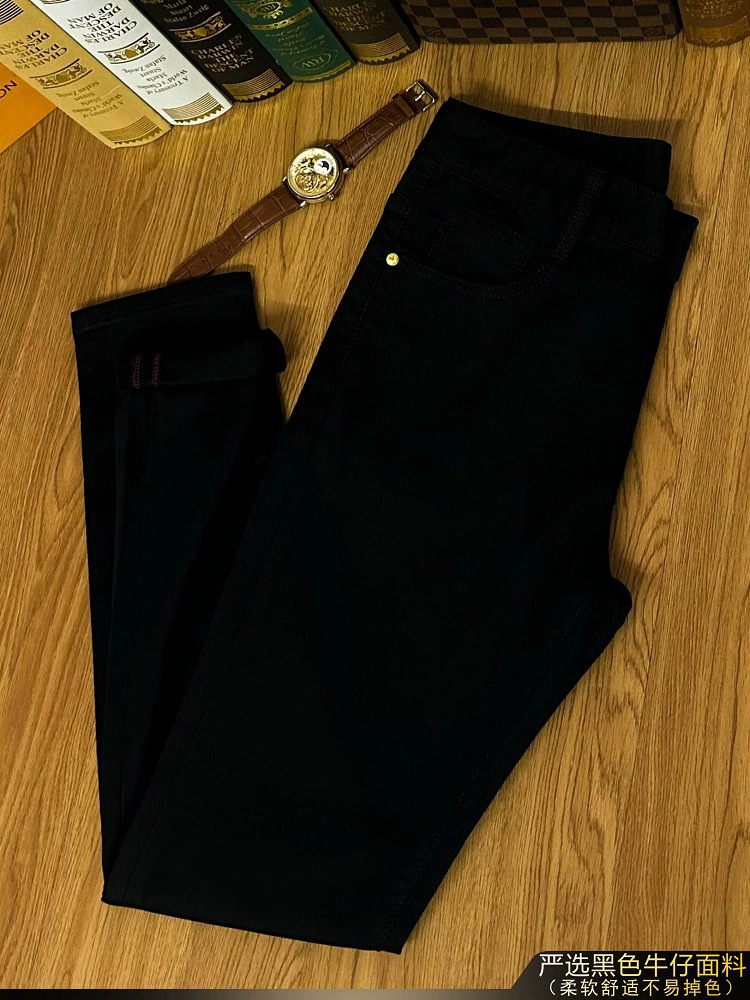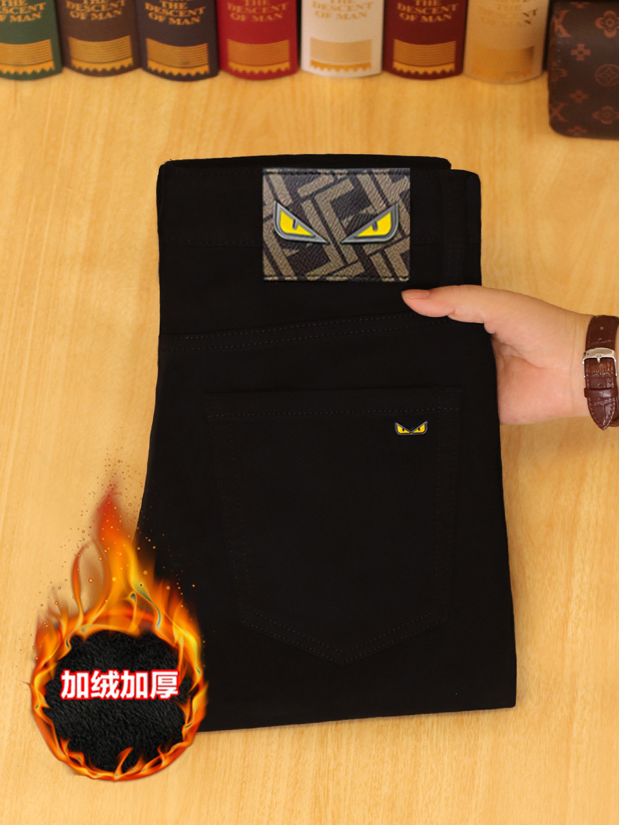 홍콩 트렌디 블랙 청바지 남성 가을 겨울 신상 슬림핏 스몰 피트 스트레치 라이트 럭셔리 플러스 벨벳 캐주얼 바지스토어 가기