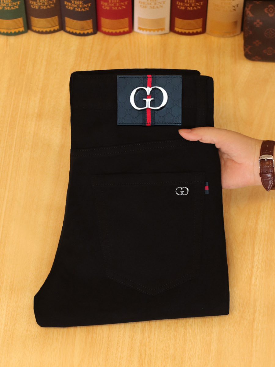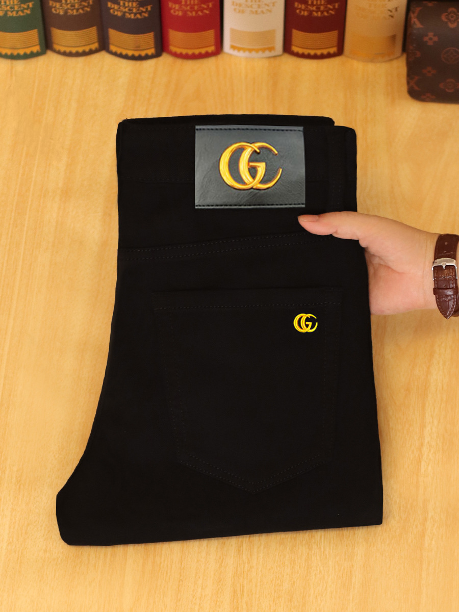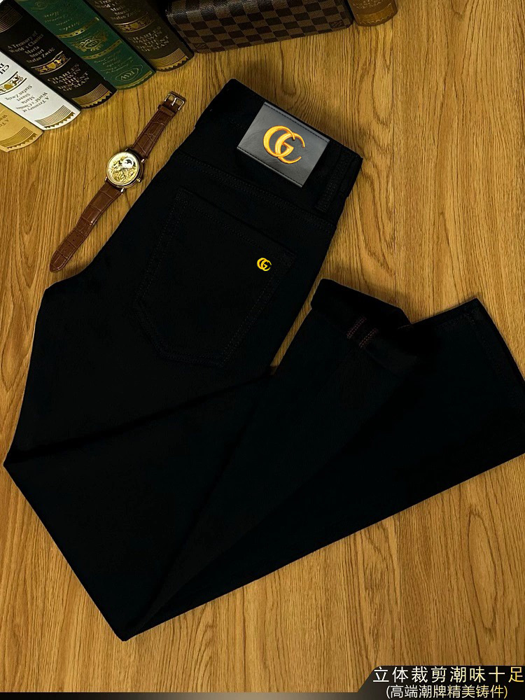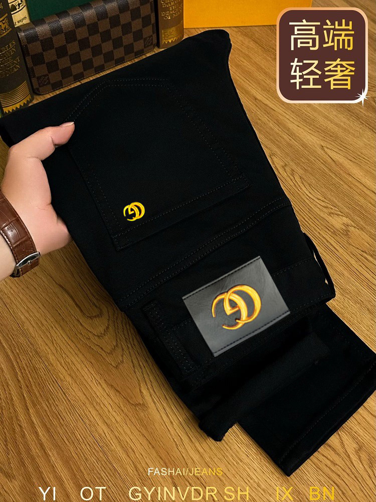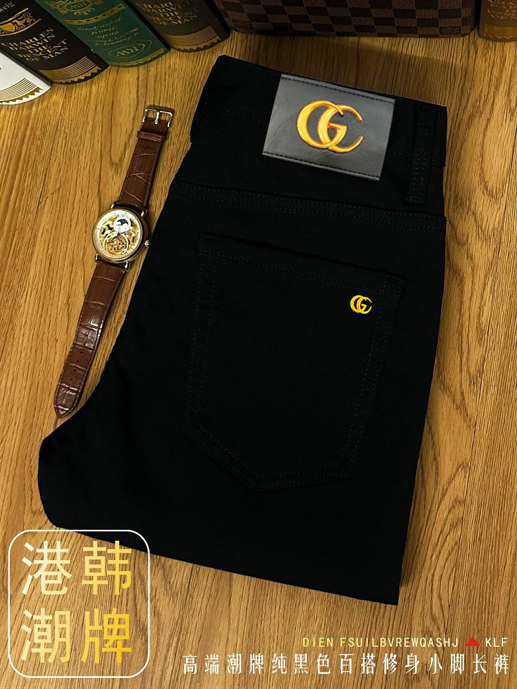 홍콩 트렌디 블랙 청바지 남성 가을 겨울 신상 슬림핏 스몰 피트 스트레치 라이트 럭셔리 플러스 벨벳 캐주얼 바지스토어 가기