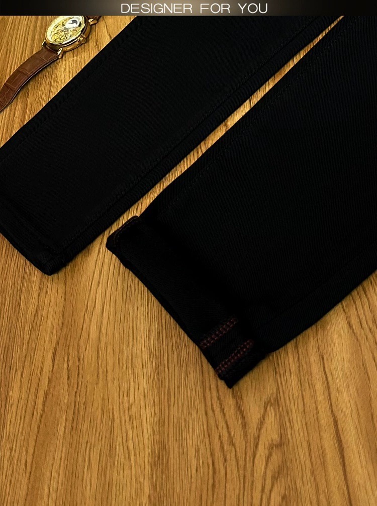 홍콩 트렌디 블랙 청바지 남성 가을 겨울 신상 슬림핏 스몰 피트 스트레치 라이트 럭셔리 플러스 벨벳 캐주얼 바지