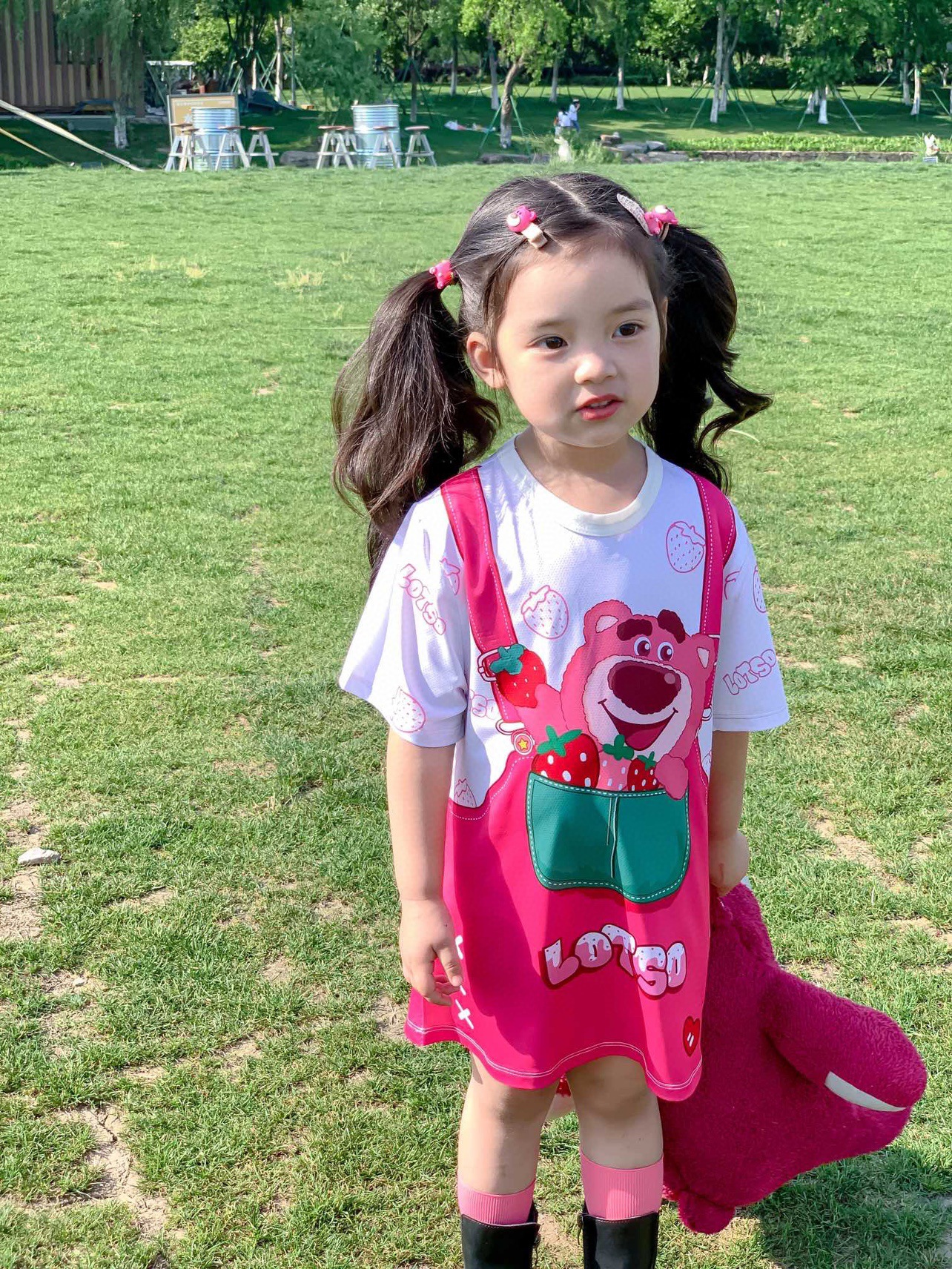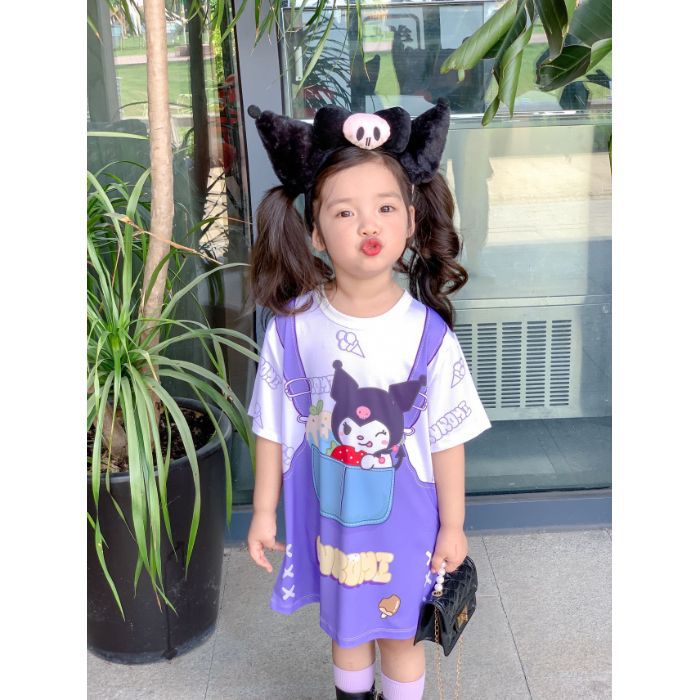 아기 소녀 Kuromi 귀여운 만화 드레스 여름 새로운 딸기 곰 패션 스타일 티셔츠 스커트