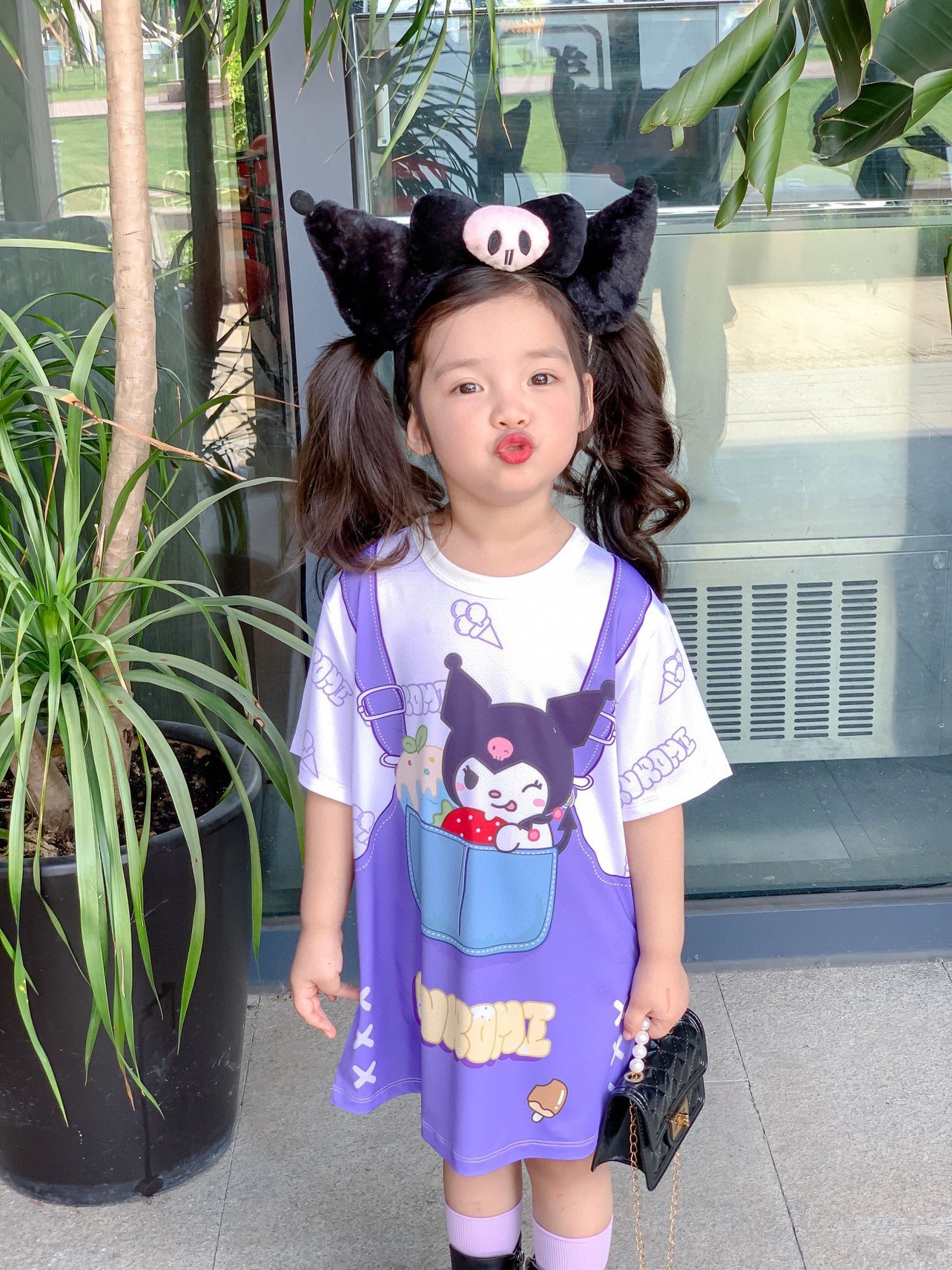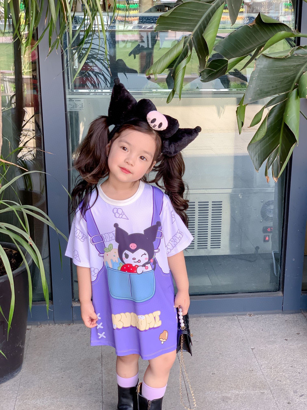 아기 소녀 Kuromi 귀여운 만화 드레스 여름 새로운 딸기 곰 패션 스타일 티셔츠 스커트스토어 가기