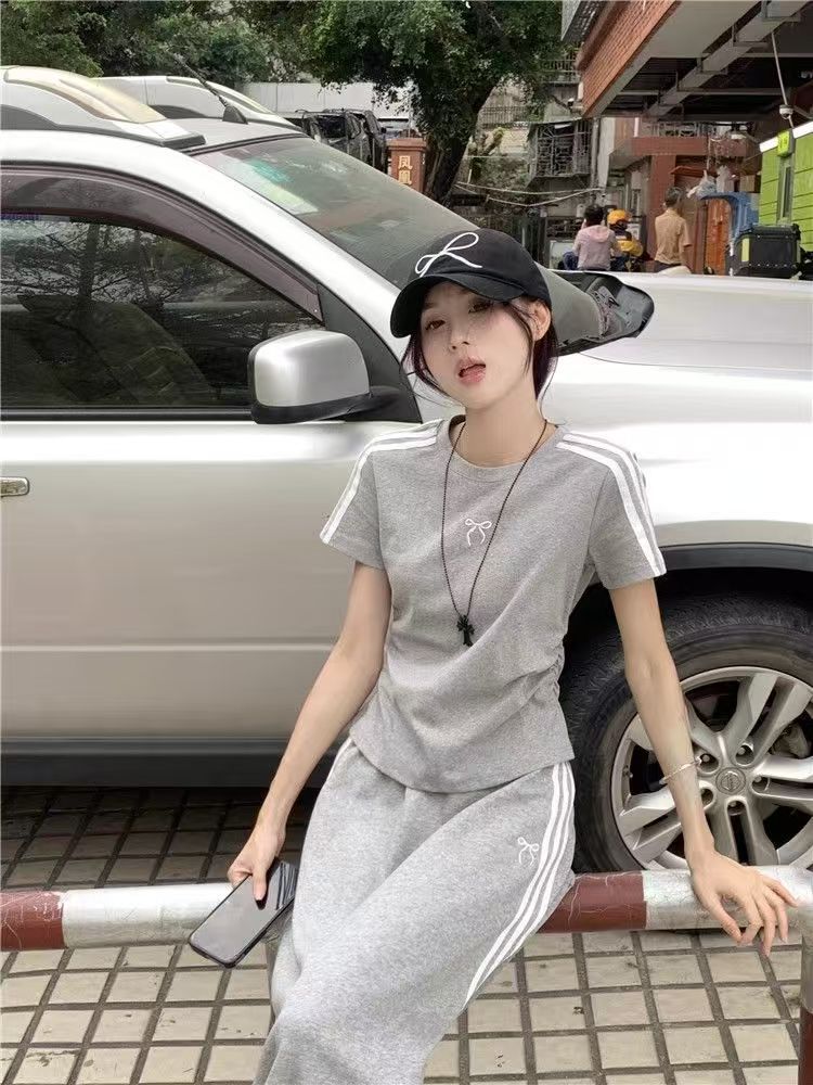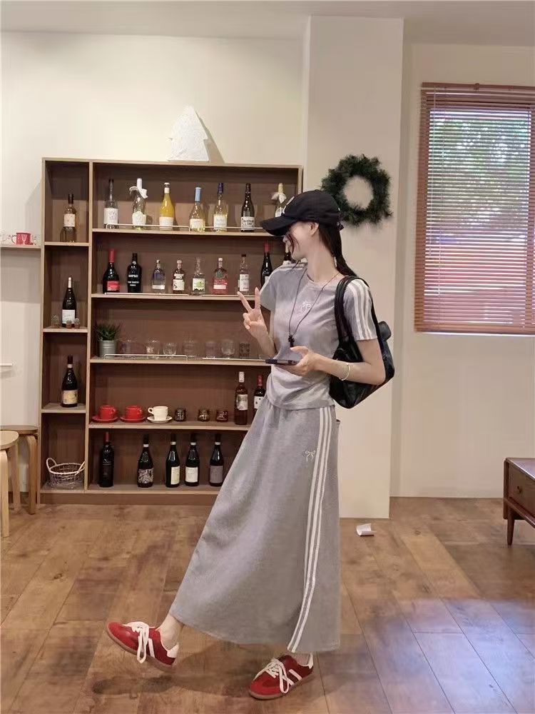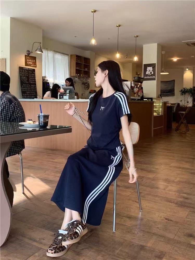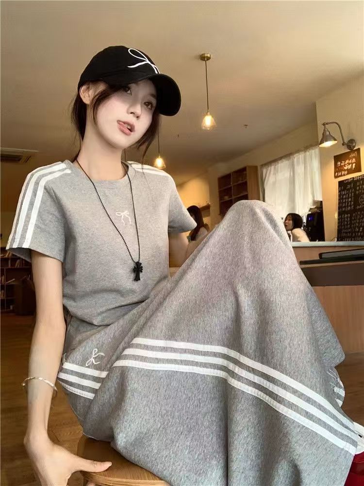 반소매 원피스 여성 여름 한국식 스포츠 레저 패션 3 바 반팔 티셔츠 스커트 투피스 세트스토어 가기