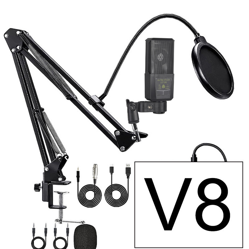 영어 새로운 BM800 콘덴서 마이크 V8 사운드 카드 크로스보더 앵커 컴퓨터 녹음 스탠드 라이브 방송 풀 세트스토어 가기