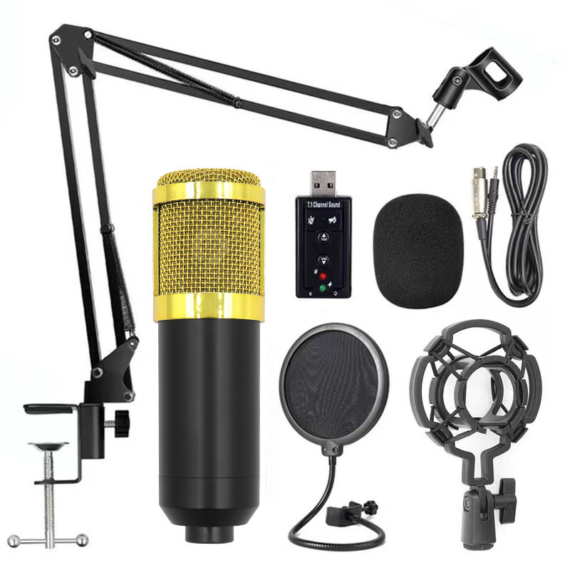 영어 새로운 BM800 콘덴서 마이크 V8 사운드 카드 크로스보더 앵커 컴퓨터 녹음 스탠드 라이브 방송 풀 세트