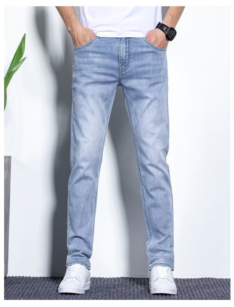 봄 신상 남성 청바지 트렌디 슬림 스트레이트 캐주얼 스트레치 하이엔드 다용도 슬림 핏 핸섬 롱 팬츠