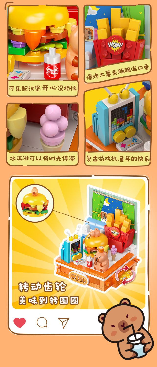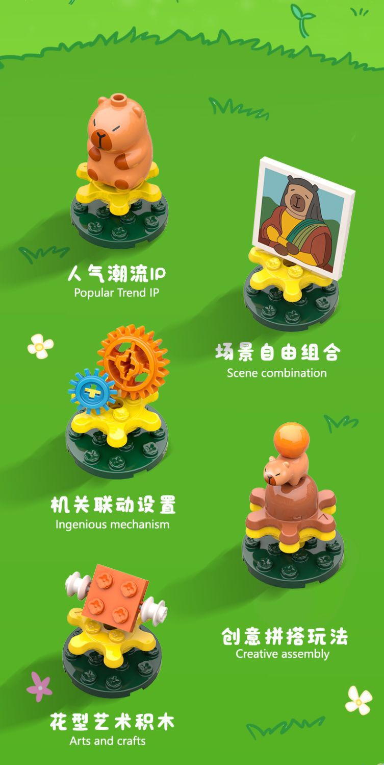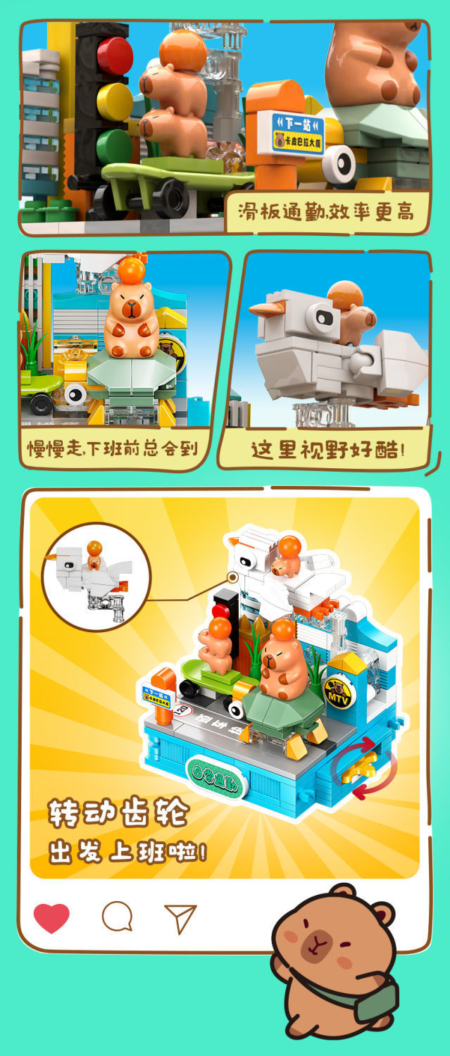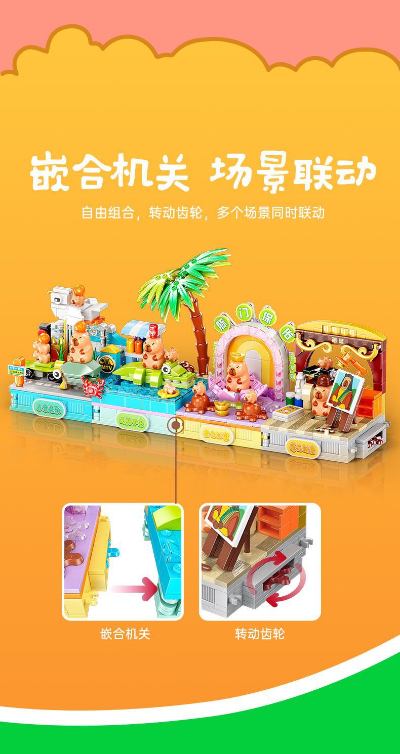 Jiale 특별 카피바라의 일상적인 작은 장면 회전 기계 조립 빌딩 블록 어린이 선물 귀여운 장식품