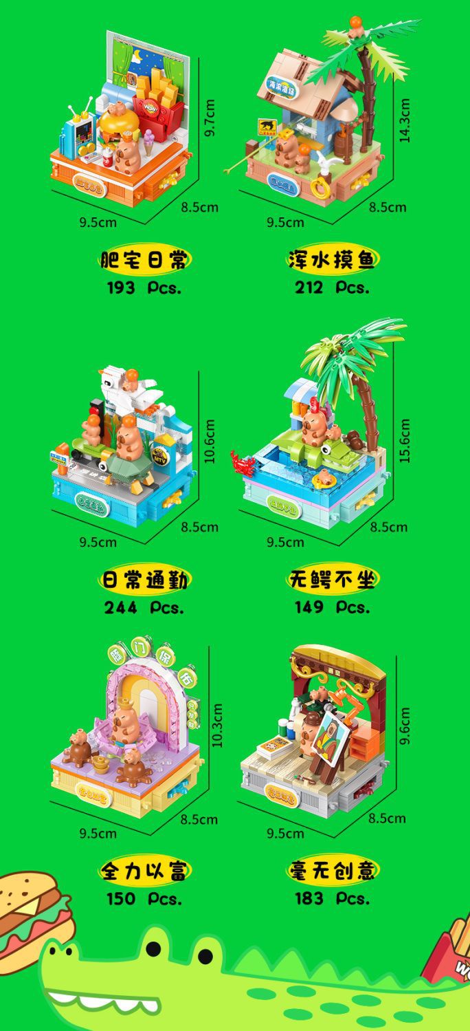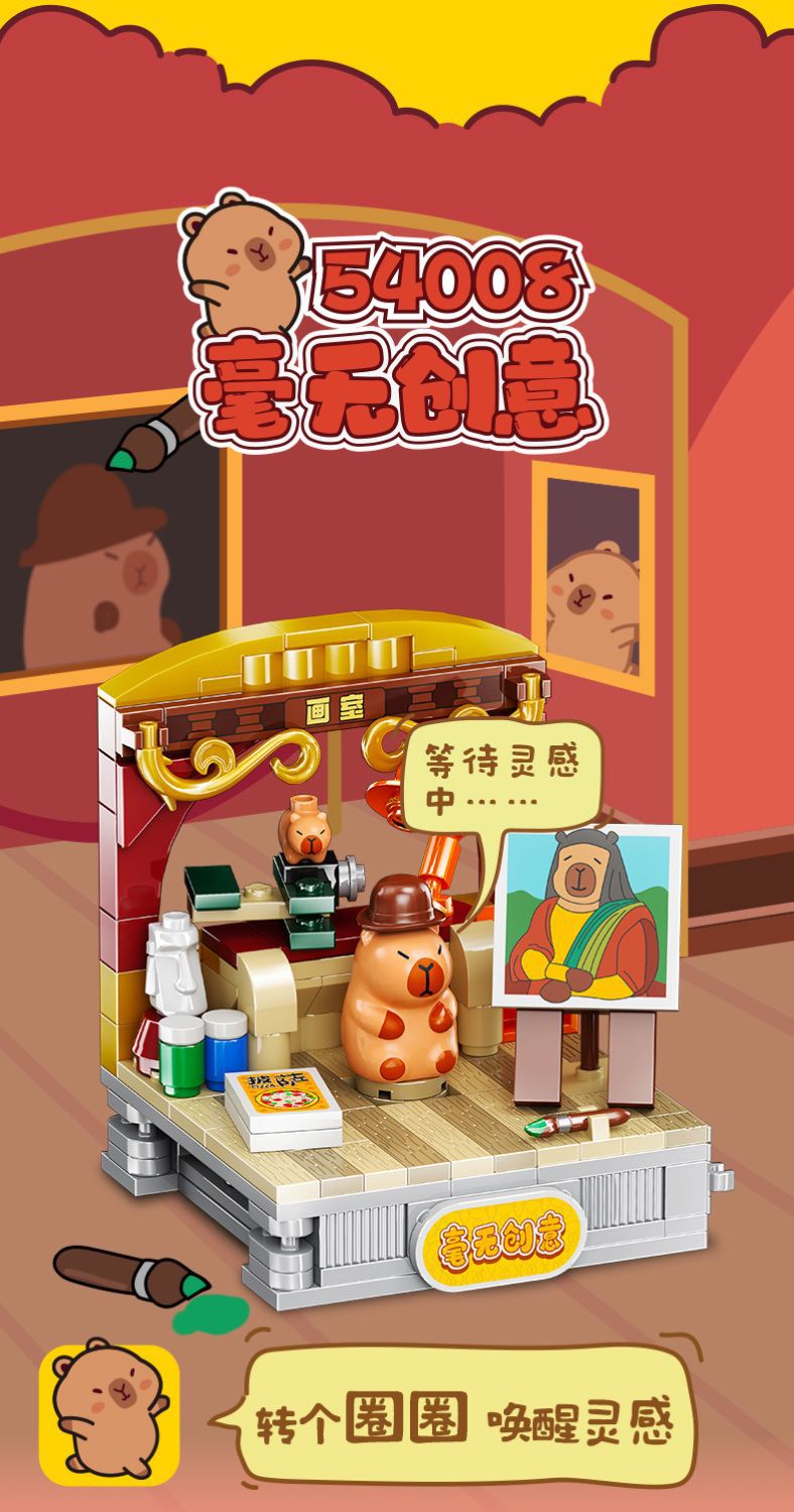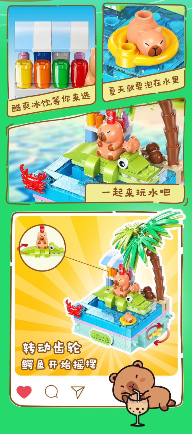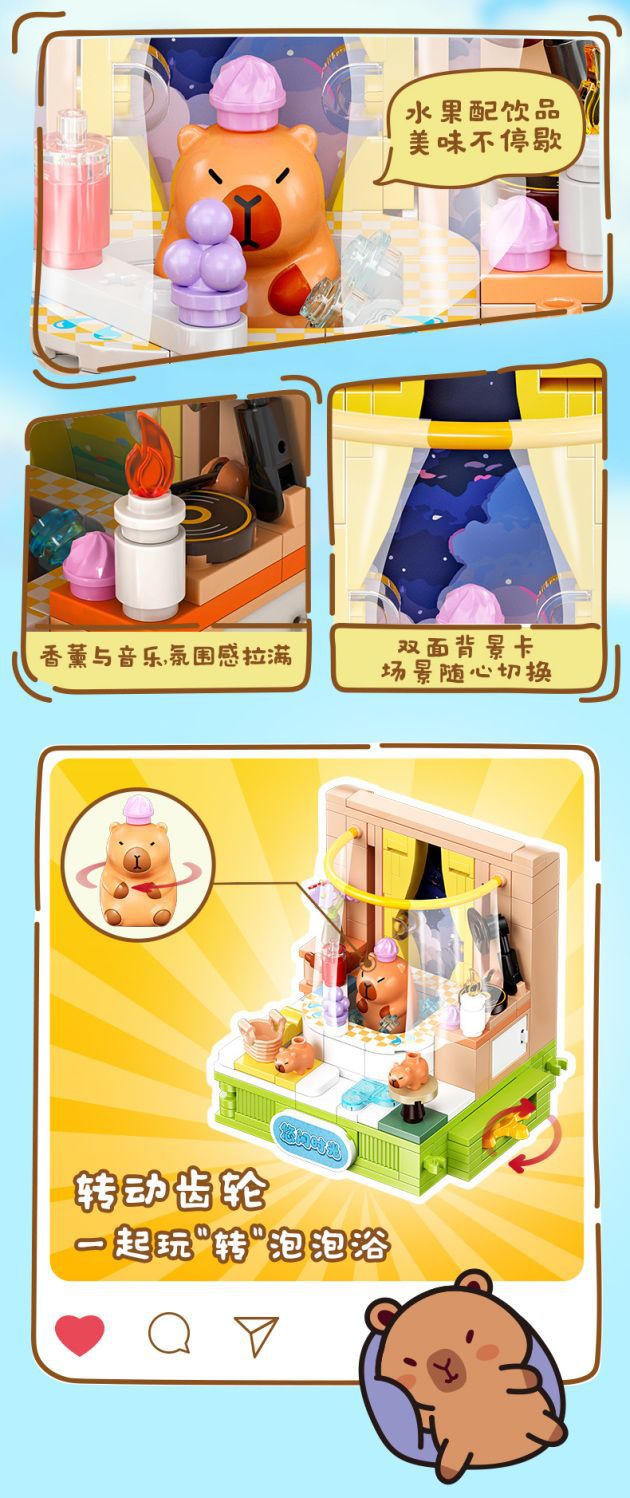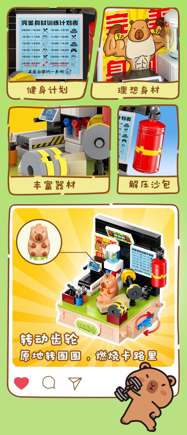 Jiale 특별 카피바라의 일상적인 작은 장면 회전 기계 조립 빌딩 블록 어린이 선물 귀여운 장식품