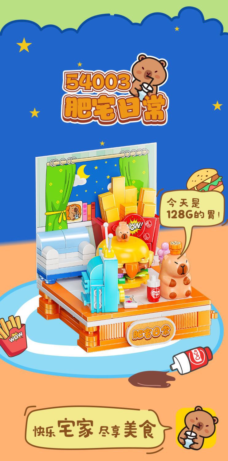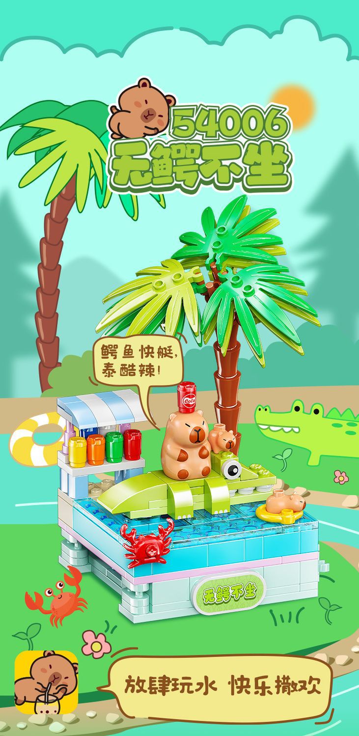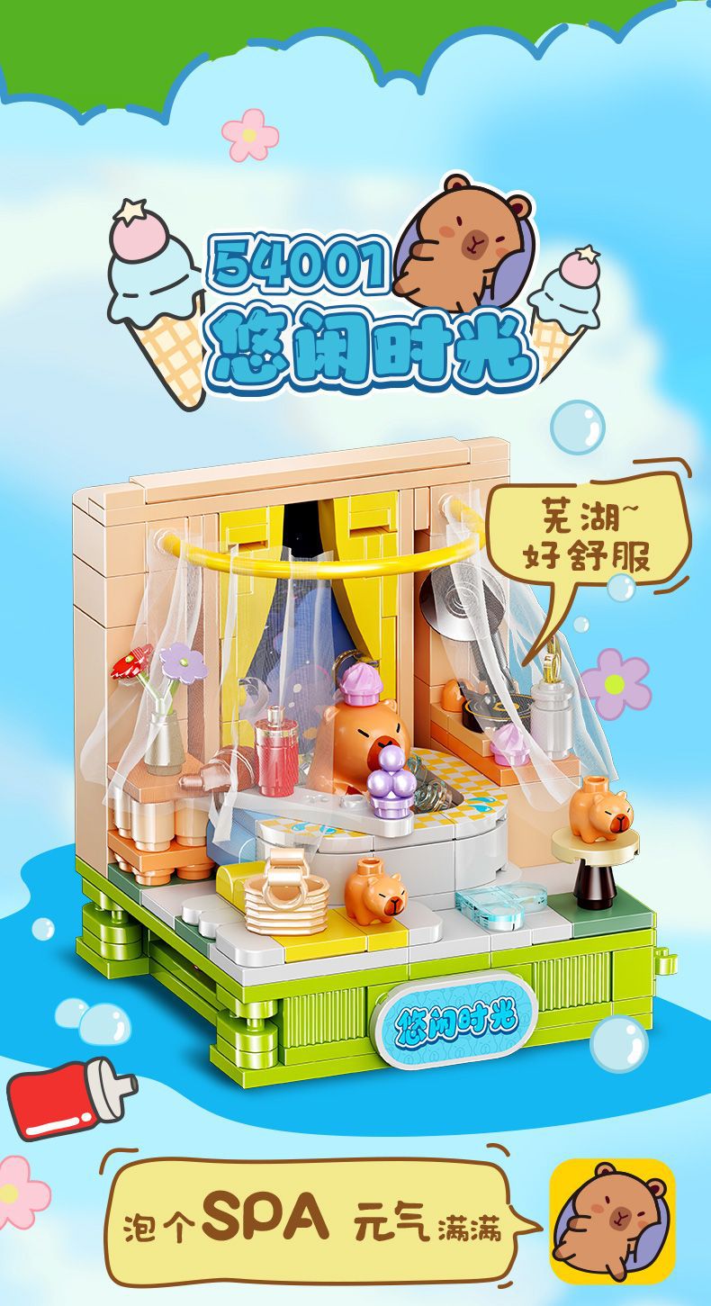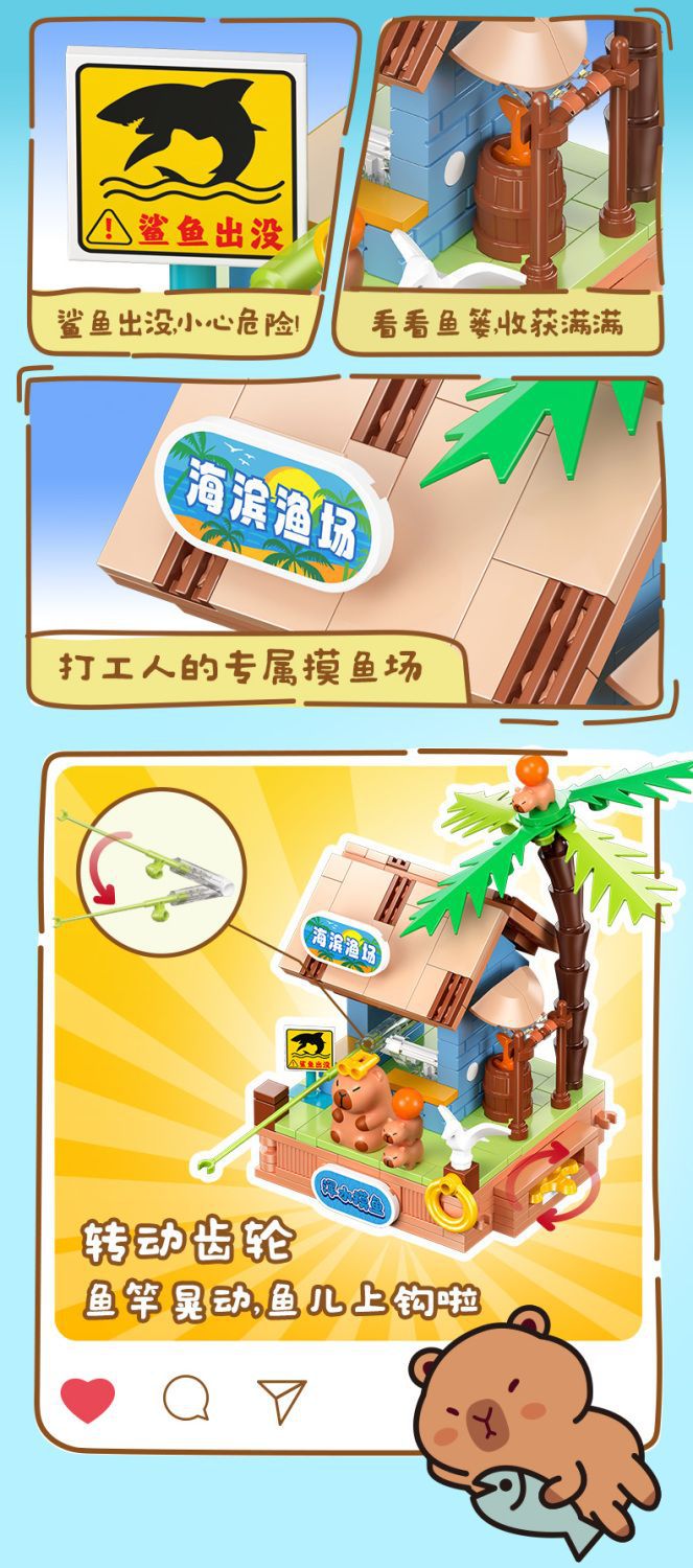 Jiale 특별 카피바라의 일상적인 작은 장면 회전 기계 조립 빌딩 블록 어린이 선물 귀여운 장식품