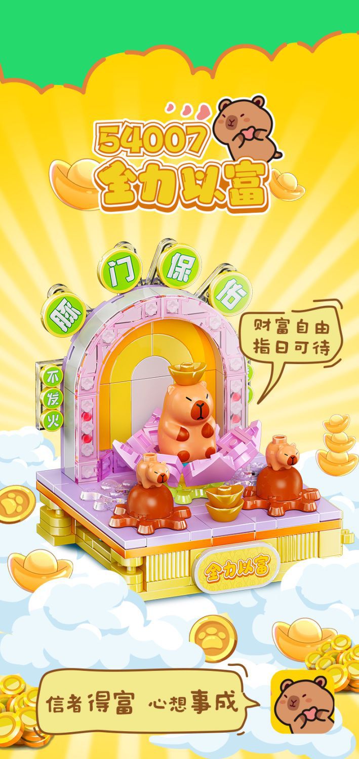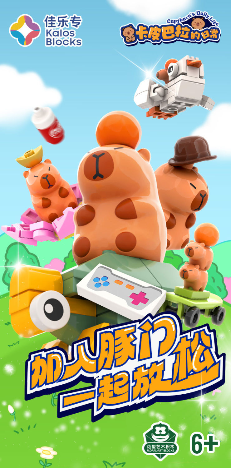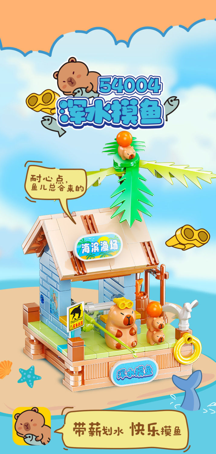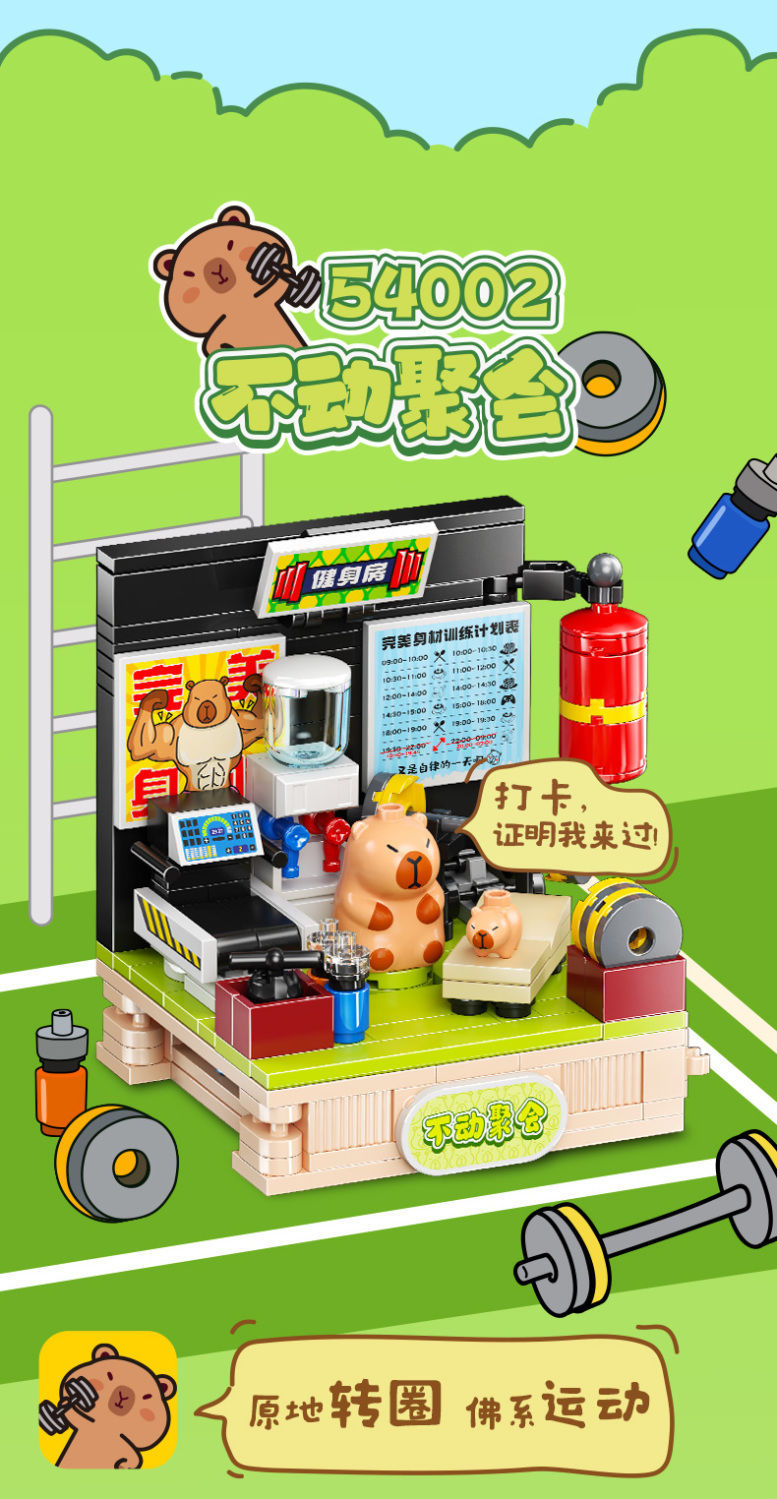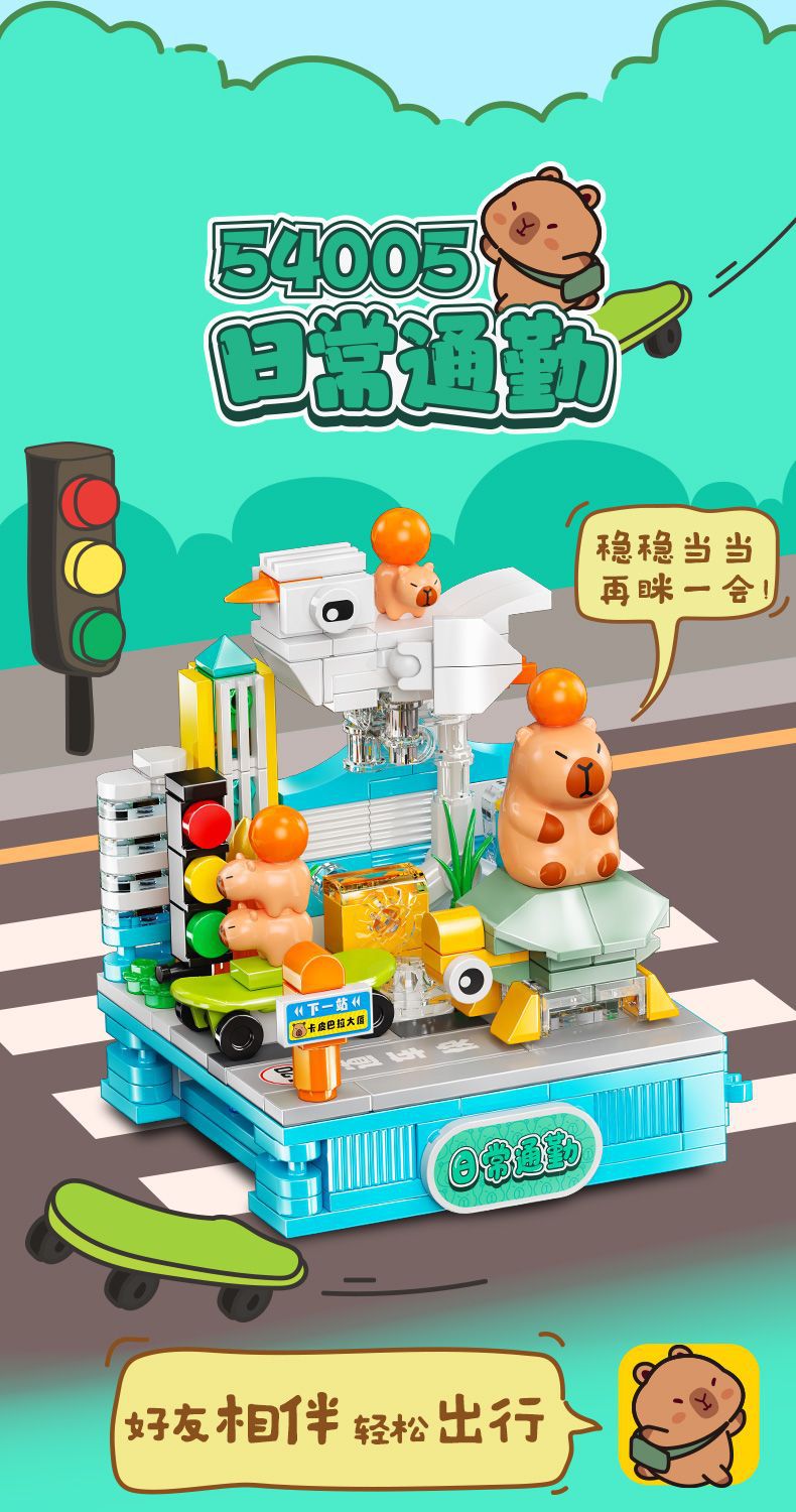 Jiale 특별 카피바라의 일상적인 작은 장면 회전 기계 조립 빌딩 블록 어린이 선물 귀여운 장식품스토어 가기