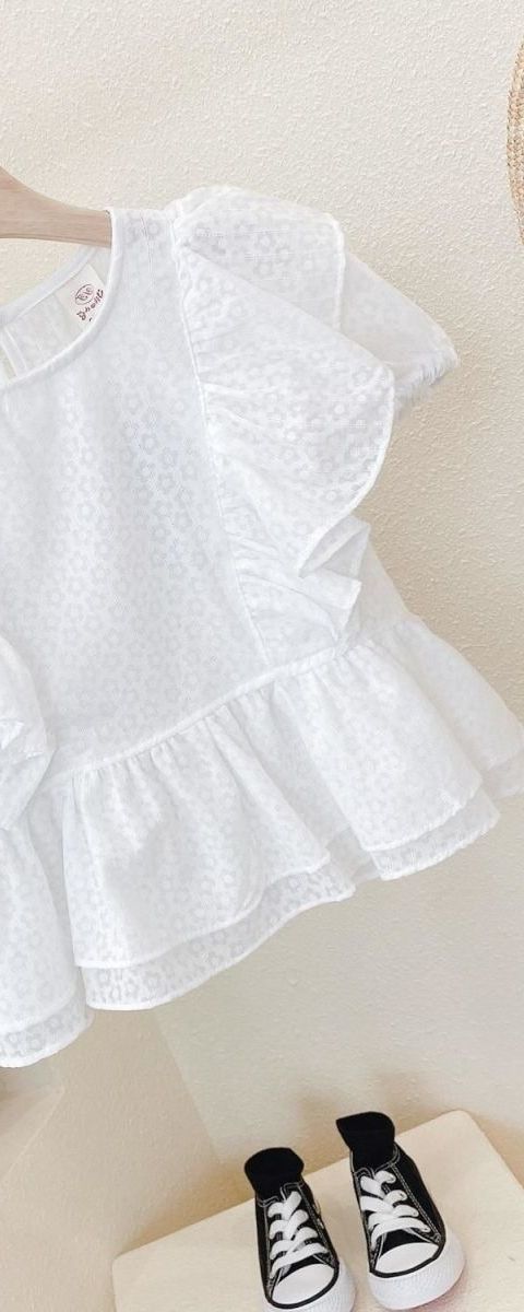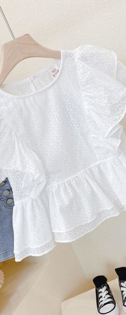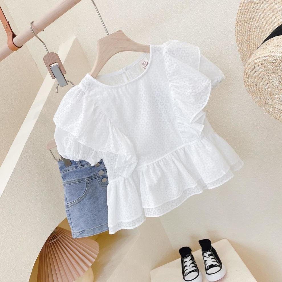 여자 흰 셔츠 퍼프 소매 셔츠 2025 새로운 여름 얇은 셔츠 짧은 소매 러플 패션 인형 셔츠스토어 가기