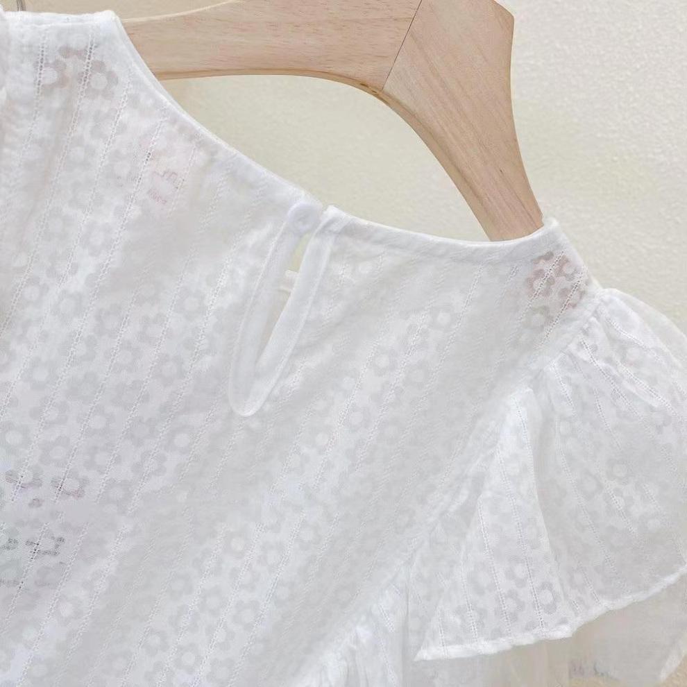 여자 흰 셔츠 퍼프 소매 셔츠 2025 새로운 여름 얇은 셔츠 짧은 소매 러플 패션 인형 셔츠