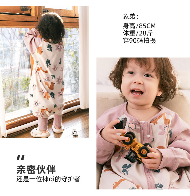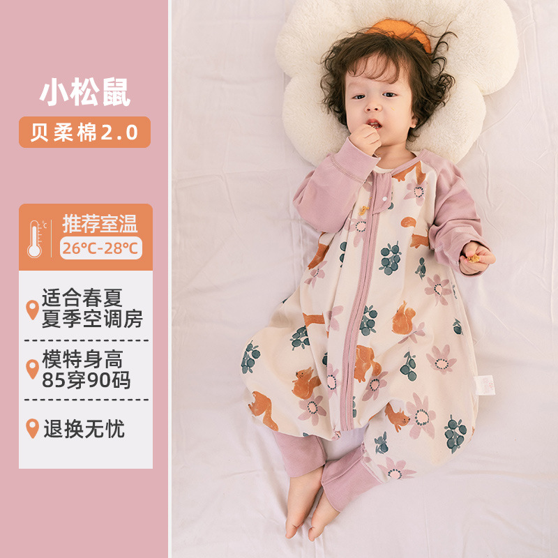 Huxibei 아기 슬리핑 백 2.0 새로운 봄과 가을 어린이 양면 잠옷 아기의 사계절 다리 킥 방지 잠옷스토어 가기