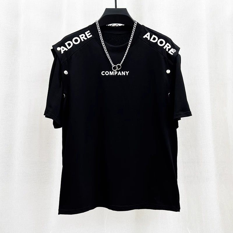 여름 새로운 틈새 성격 디자인 감각 스티칭 반팔 조끼 티셔츠 남성 패션 브랜드 루즈 탑 2 도매