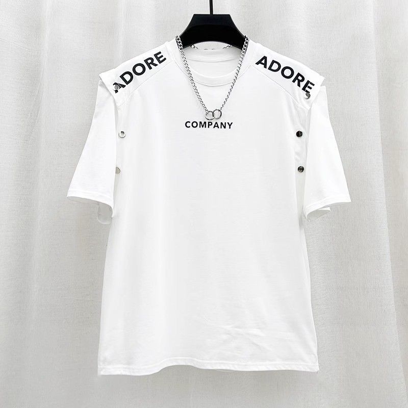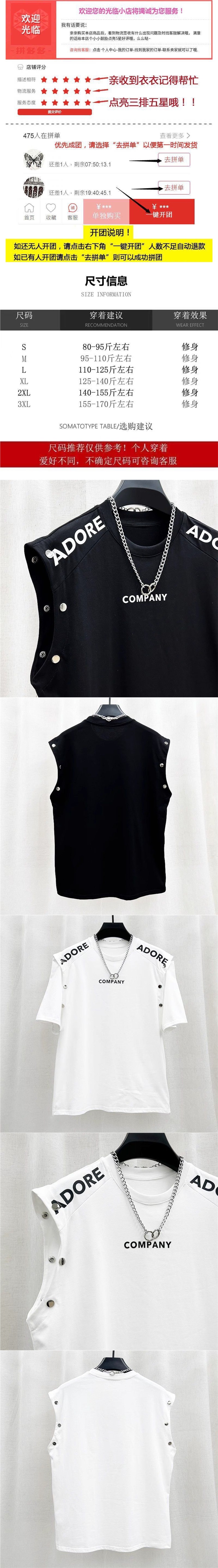 여름 새로운 틈새 성격 디자인 감각 스티칭 반팔 조끼 티셔츠 남성 패션 브랜드 루즈 탑 2 도매스토어 가기
