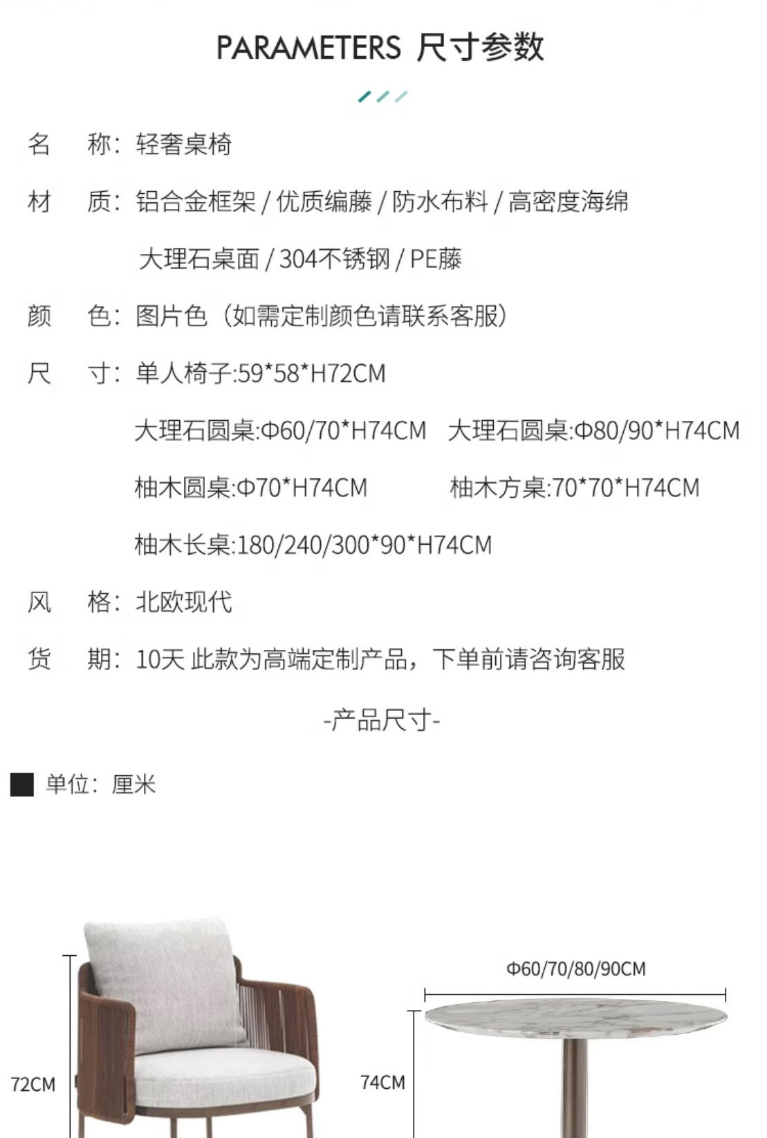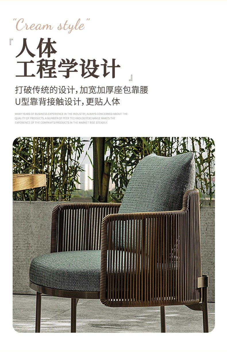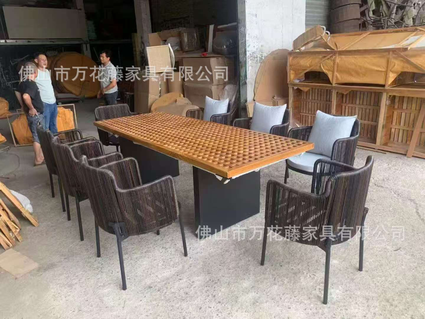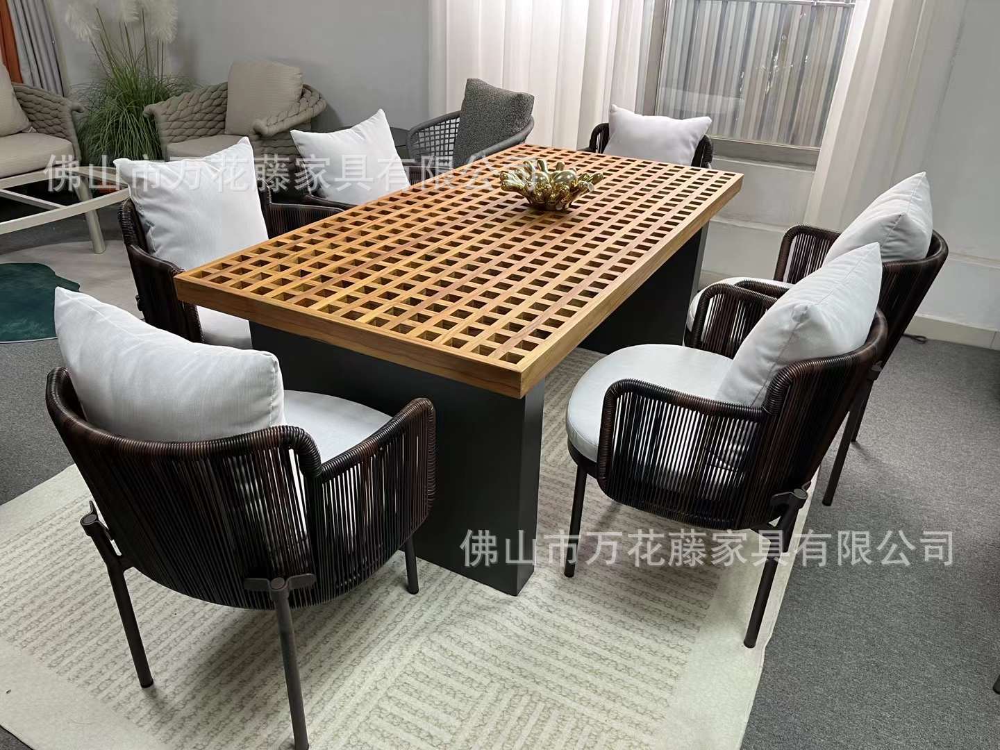 현대 간단한 금속 야외 가구 안뜰 야외 단단한 나무 차 테이블과 등나무 의자 캐주얼 하이 엔드 티크 식탁 식당 의자스토어 가기