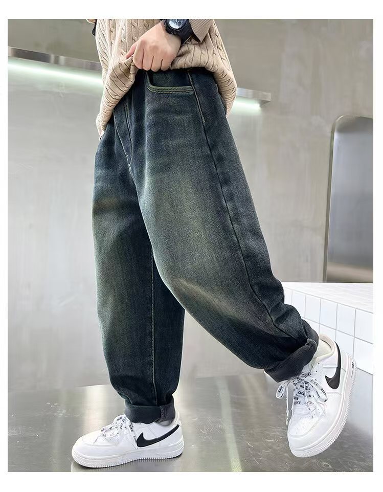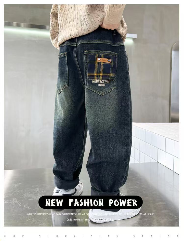 소년 루즈한 청바지 2025 봄, 가을 새로운 스타일 어린이 중대형 어린이 스트레이트 바지 소년 바지 드롭 배송