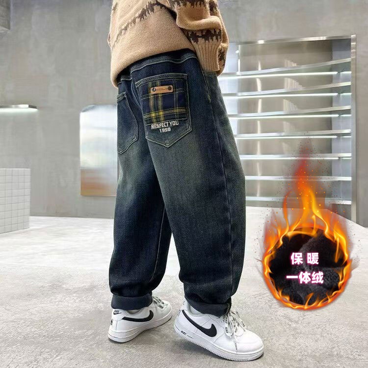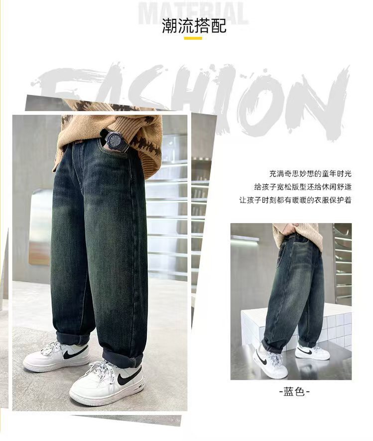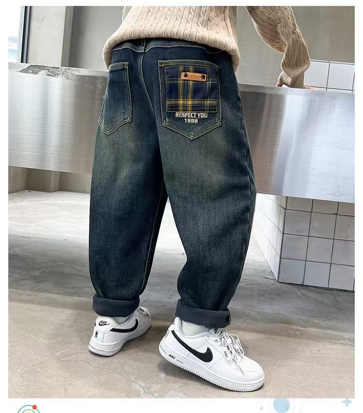 소년 루즈한 청바지 2025 봄, 가을 새로운 스타일 어린이 중대형 어린이 스트레이트 바지 소년 바지 드롭 배송스토어 가기