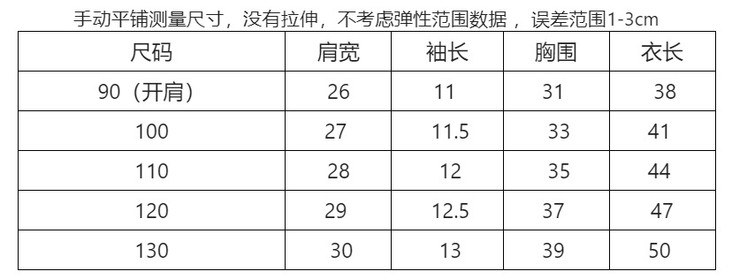 手动平铺测量尺寸,没有拉伸,不考虑弹性范围数据 ,误差范围1-3cm