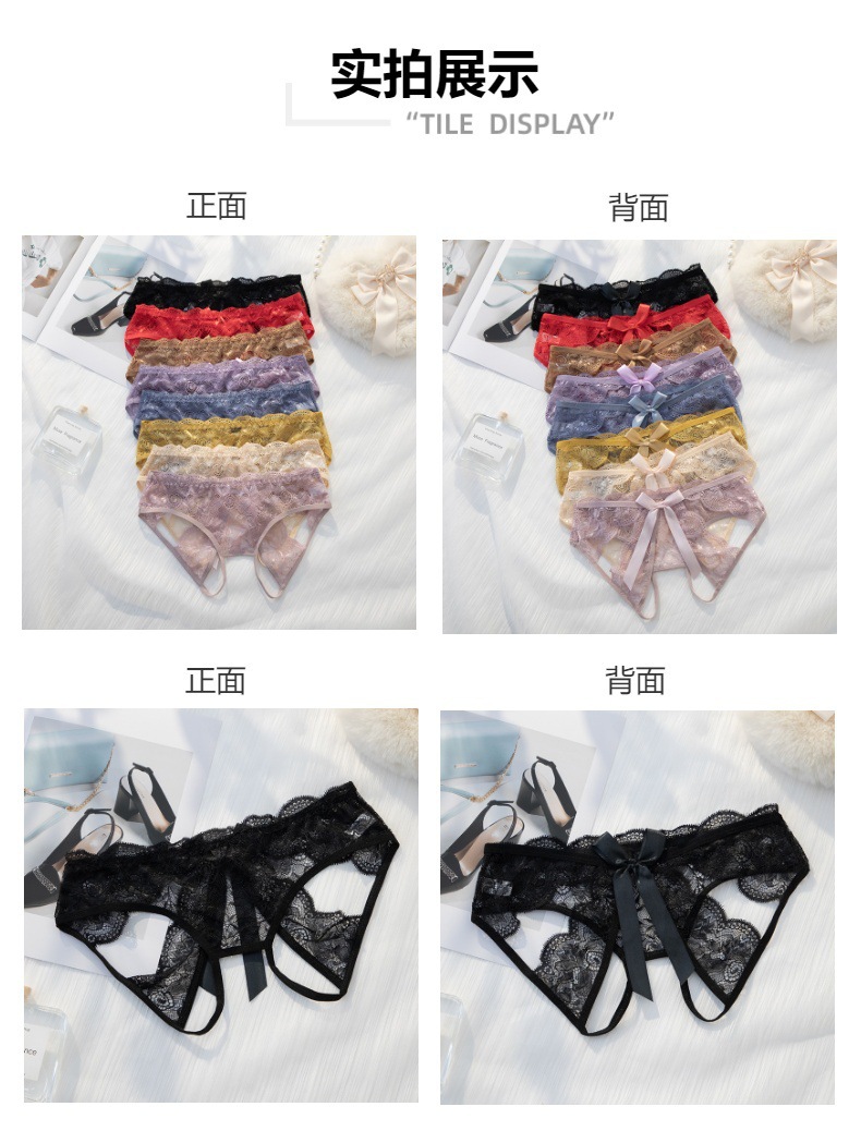 여성용 레이스 섹시 할로우 오픈 팬티, 탈착 불가, 시스루 엉덩이 노출 리본, 섹시 여성용 팬티, 대형 사이즈스토어 가기