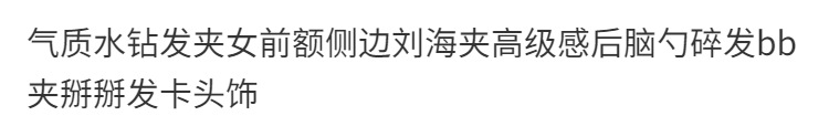 여성용 기질 라인스톤 머리핀, 이마 옆머리 클립, 뒷머리용 고급 BB 클립, 머리핀 헤드웨어