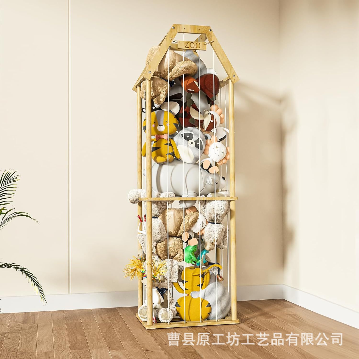 어린이 장난감 보관 랙 나무 대용량 부드러운 동물 보관 랙 가정용 바닥 장난감 인형 보관 네트