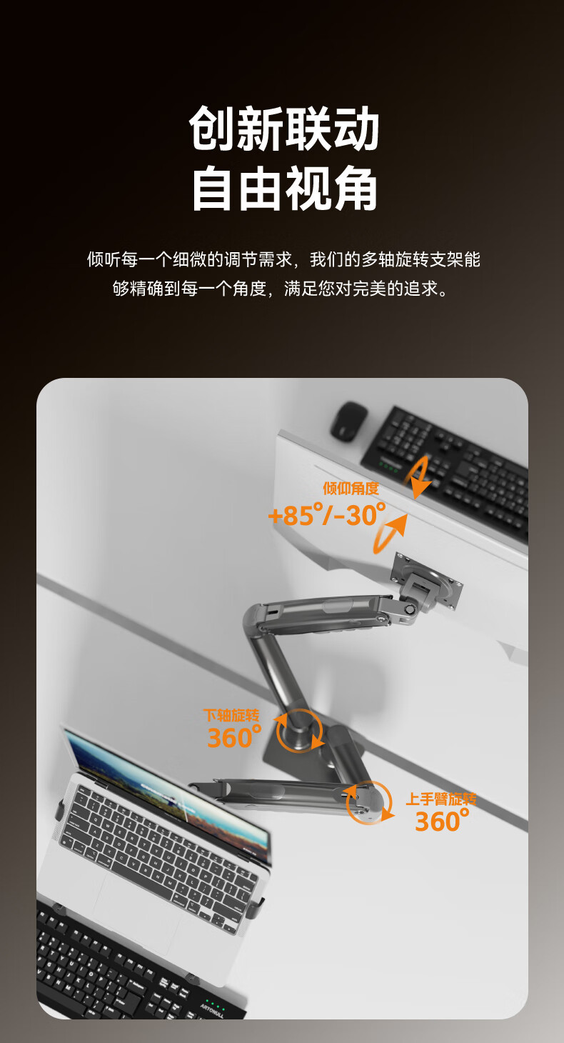 NB F160-FP 더블 스크린 노트북 캔틸레버 브래킷 더블 스크린 디스플레이 브래킷 1 조 2 건 블랙스토어 가기