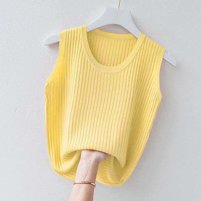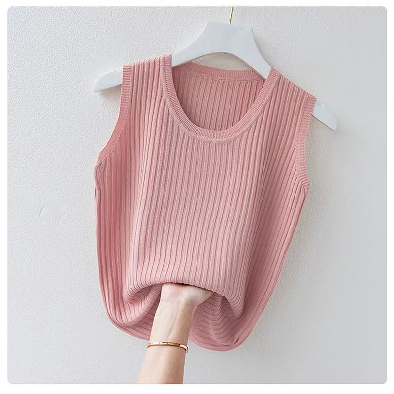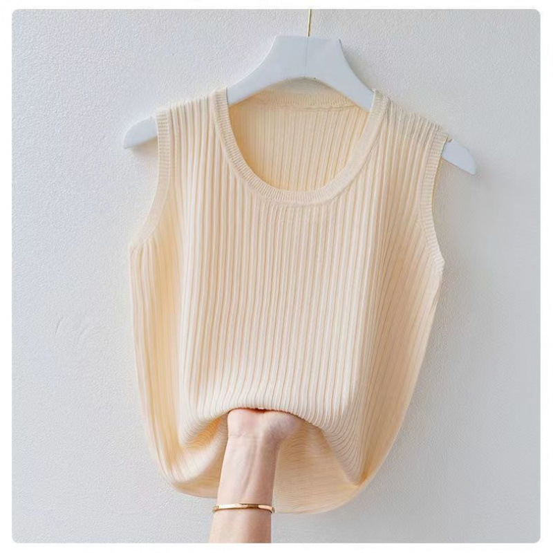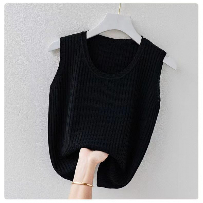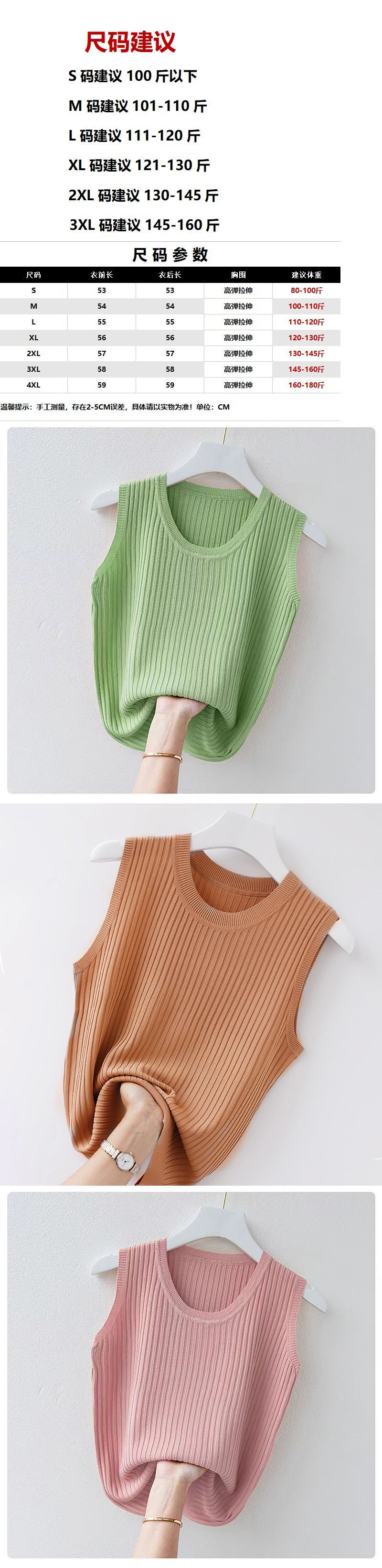 플러스 사이즈 아이스 실크 라운드 넥 카미솔 여자 여름 한국식 올매치 민소매 내부 니트 베이스 셔츠 여자 아우터웨어 탑