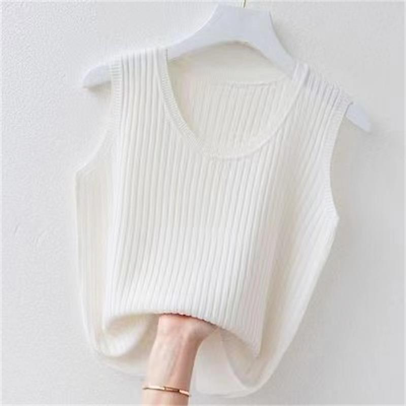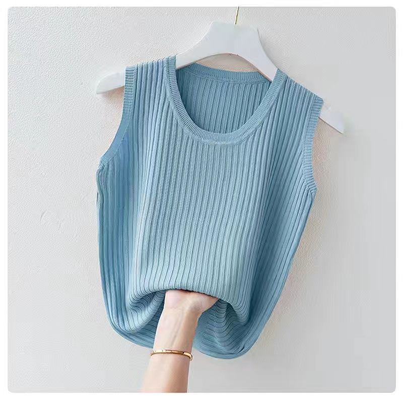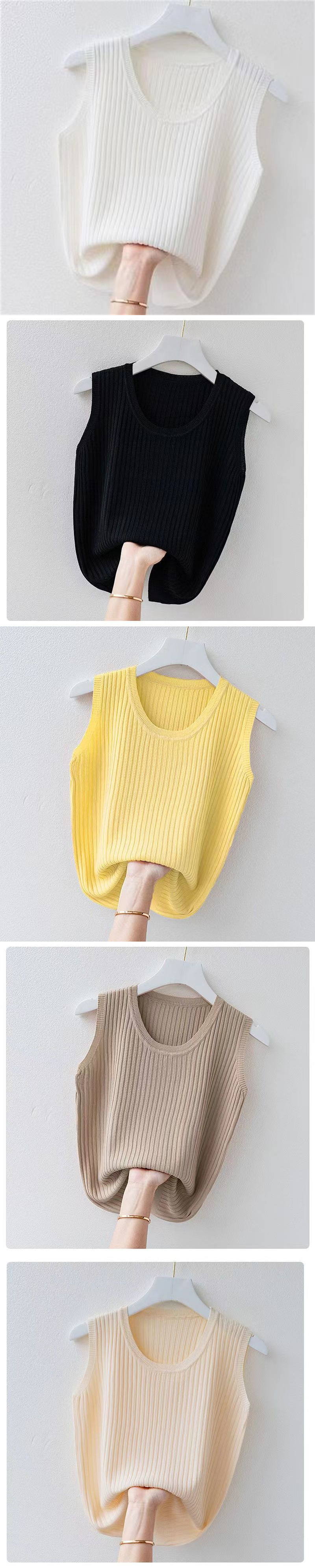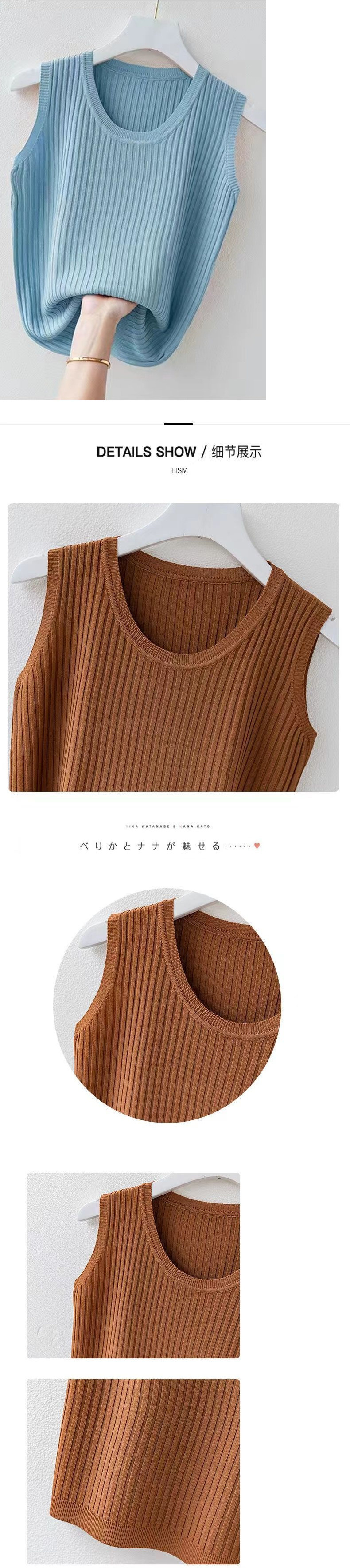 플러스 사이즈 아이스 실크 라운드 넥 카미솔 여자 여름 한국식 올매치 민소매 내부 니트 베이스 셔츠 여자 아우터웨어 탑