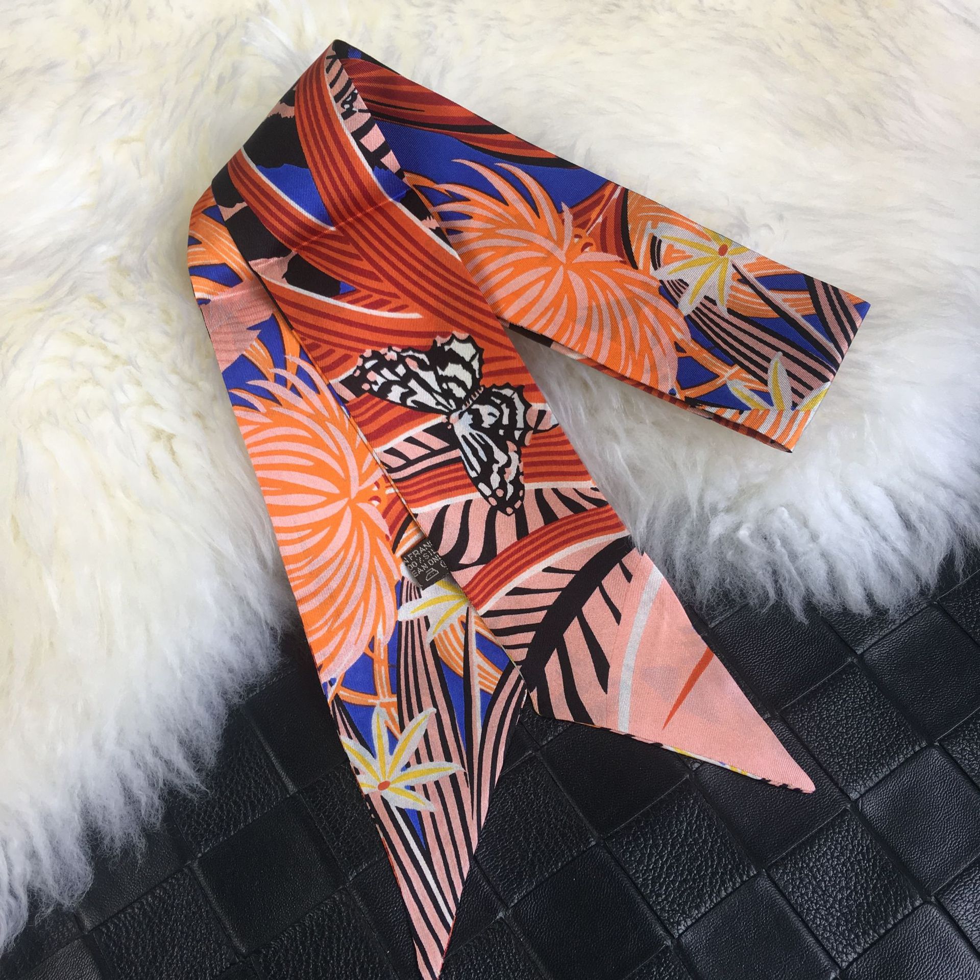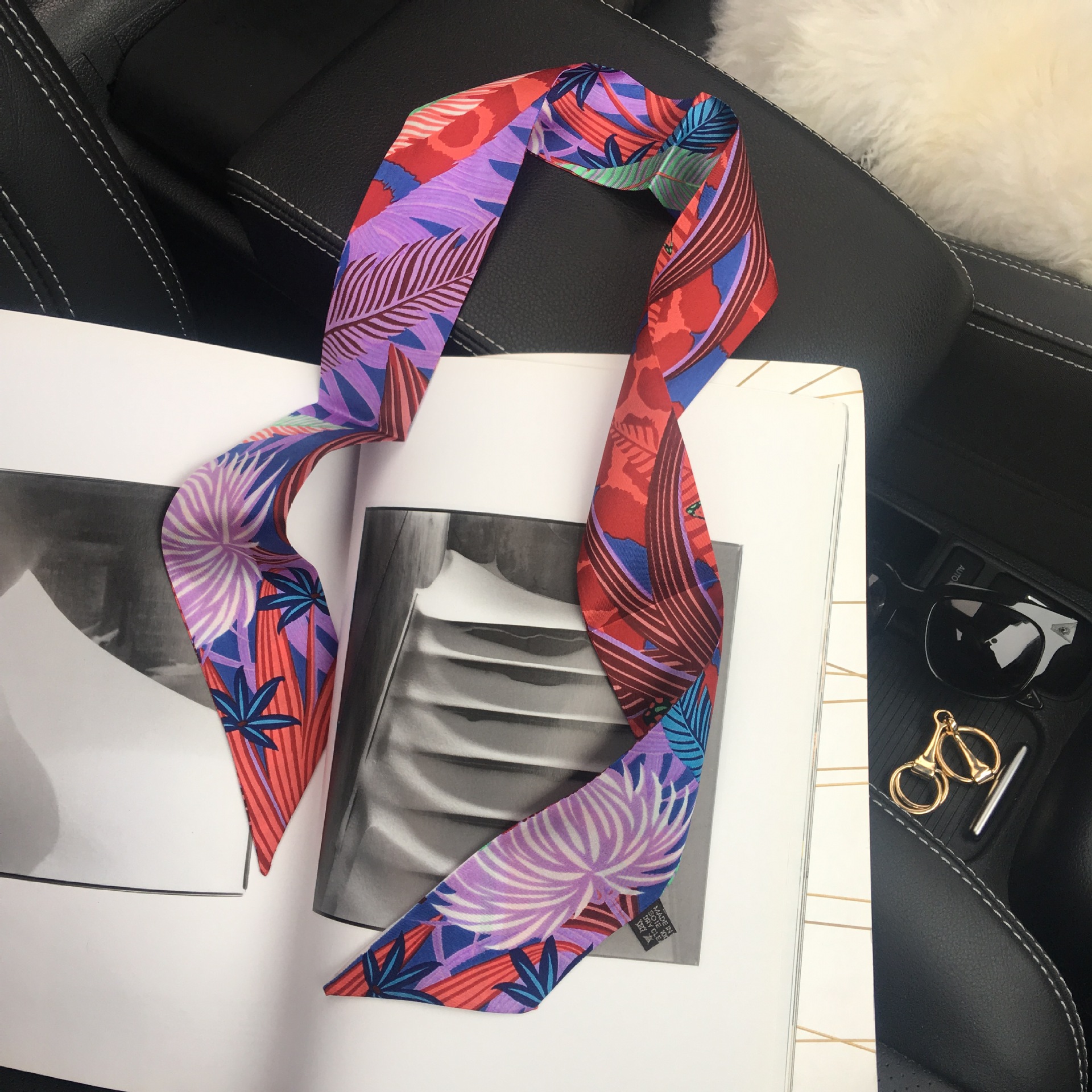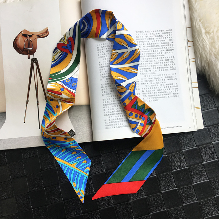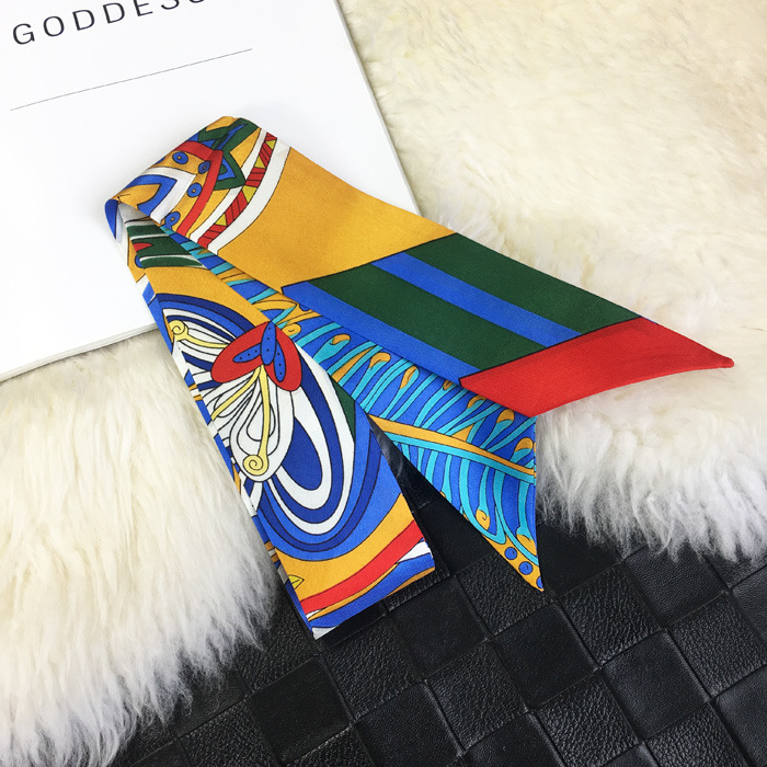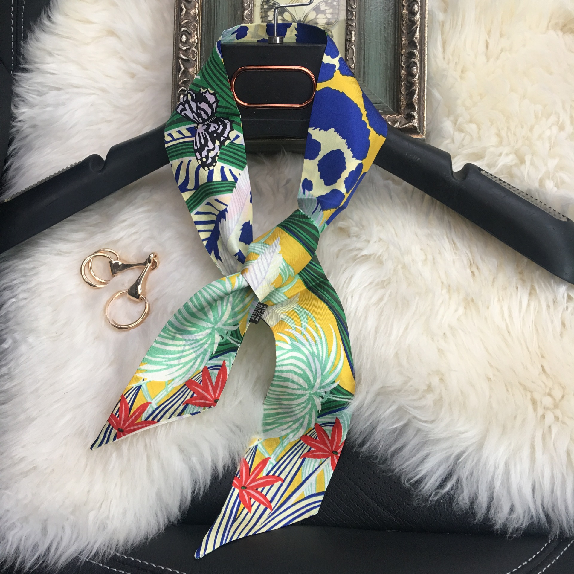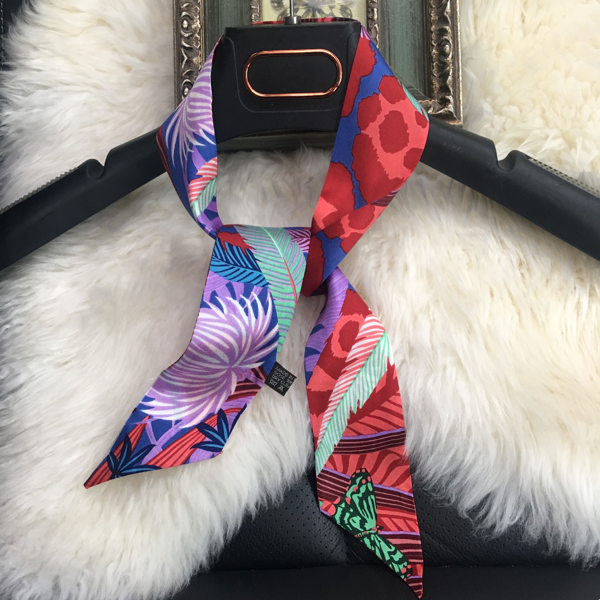 새로운 스타일 실크 테이프 뽕나무 실크 틸트 더블 레이어 실크 스카프 작은 리본 장식 스카프 여성 헤어 밴드 멀티 컬러