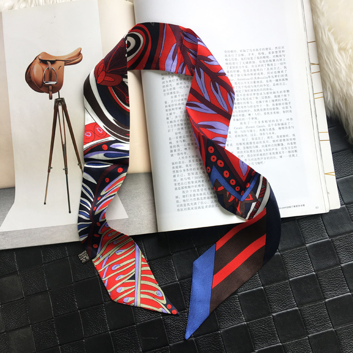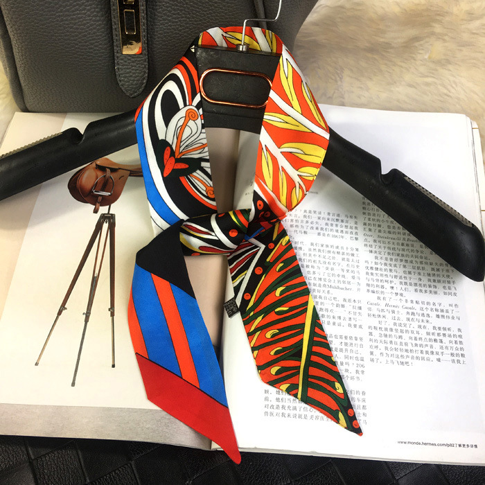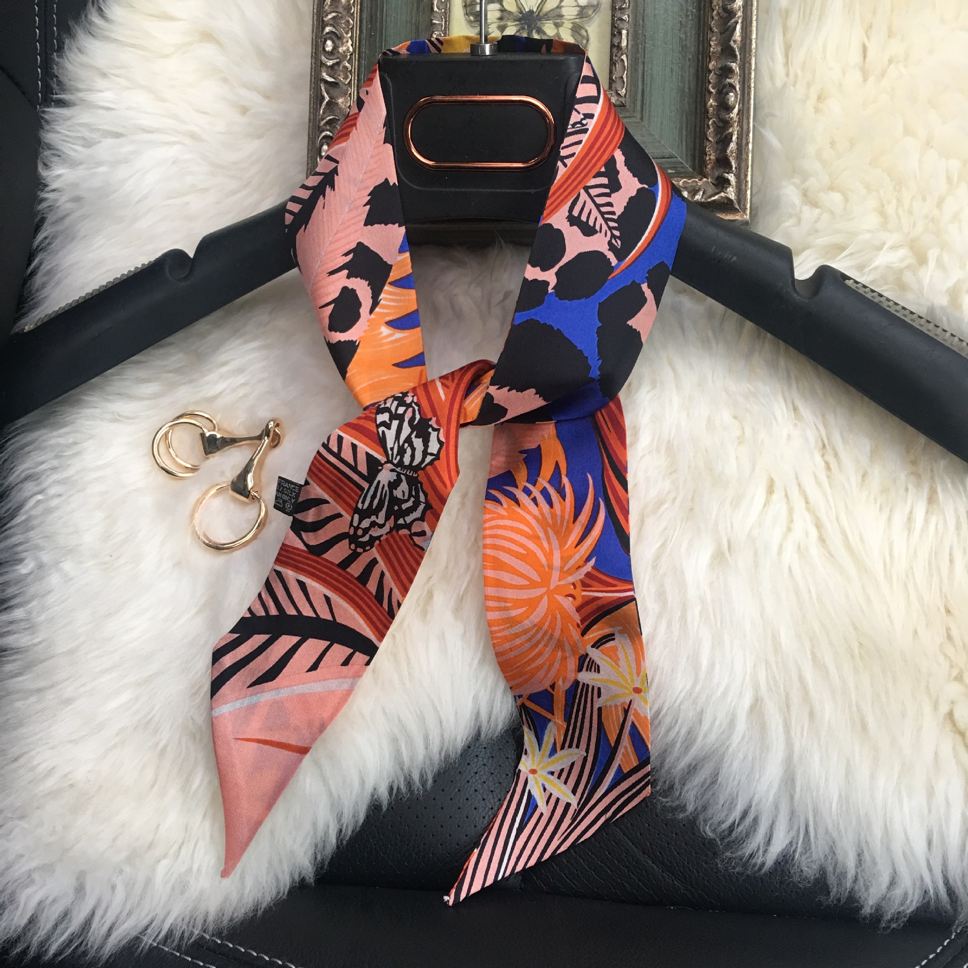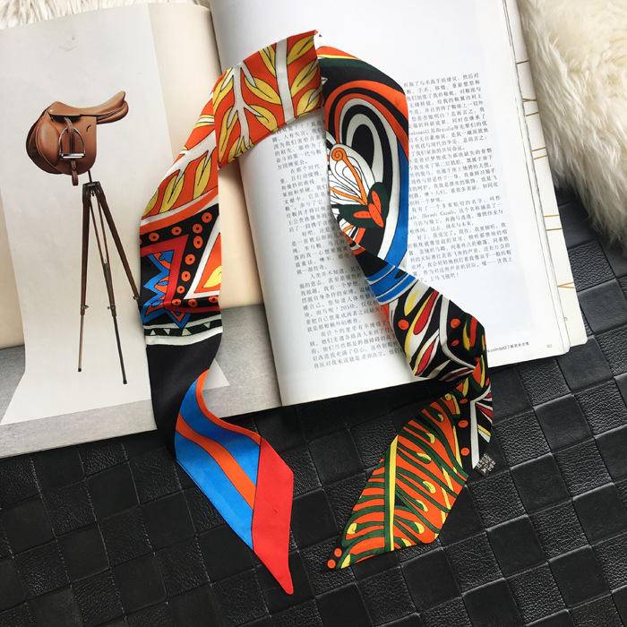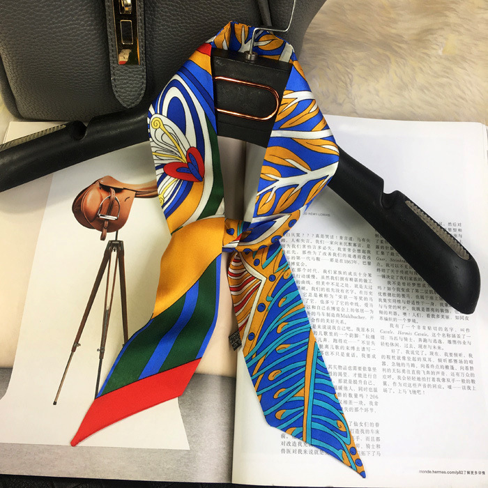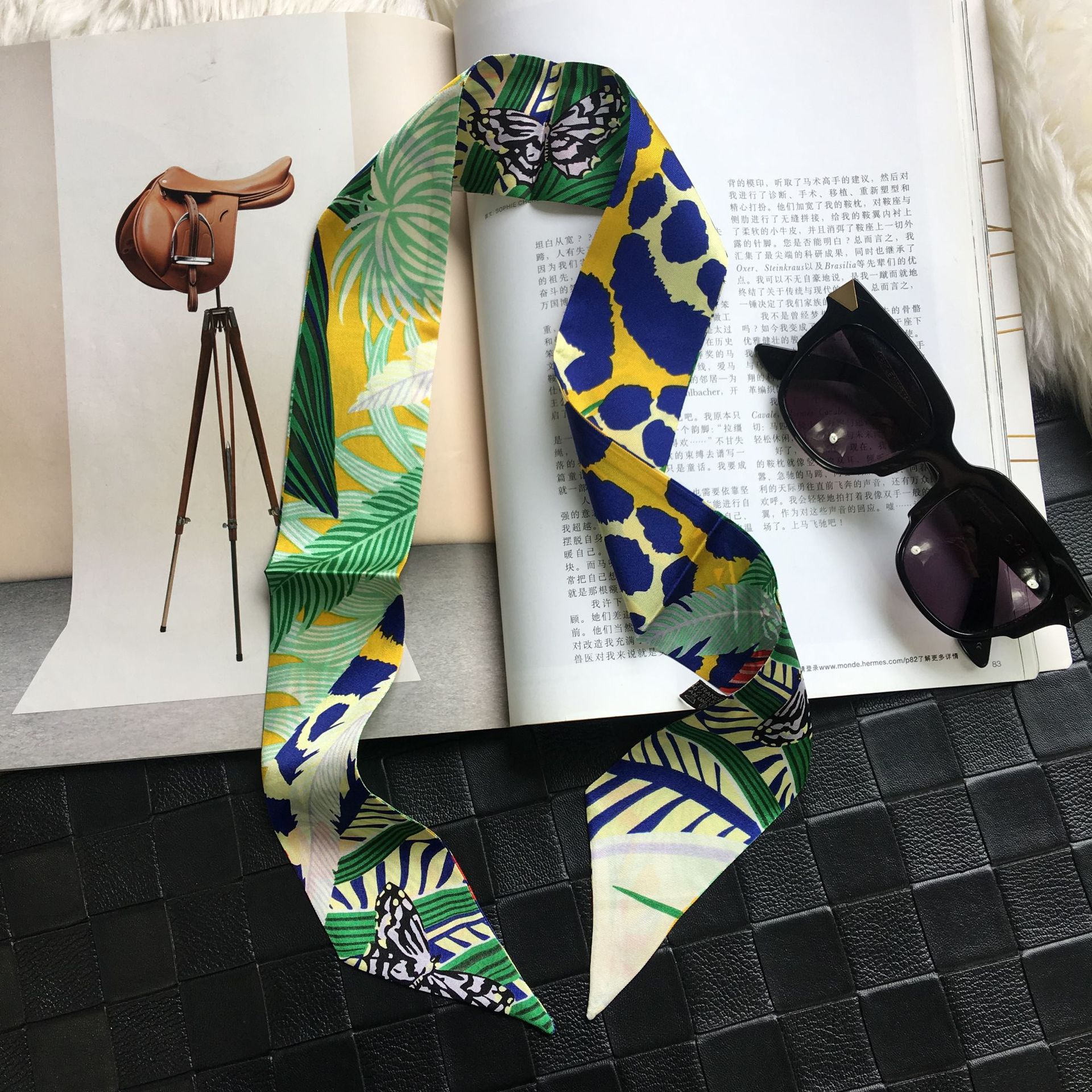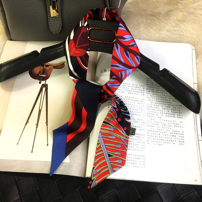 새로운 스타일 실크 테이프 뽕나무 실크 틸트 더블 레이어 실크 스카프 작은 리본 장식 스카프 여성 헤어 밴드 멀티 컬러