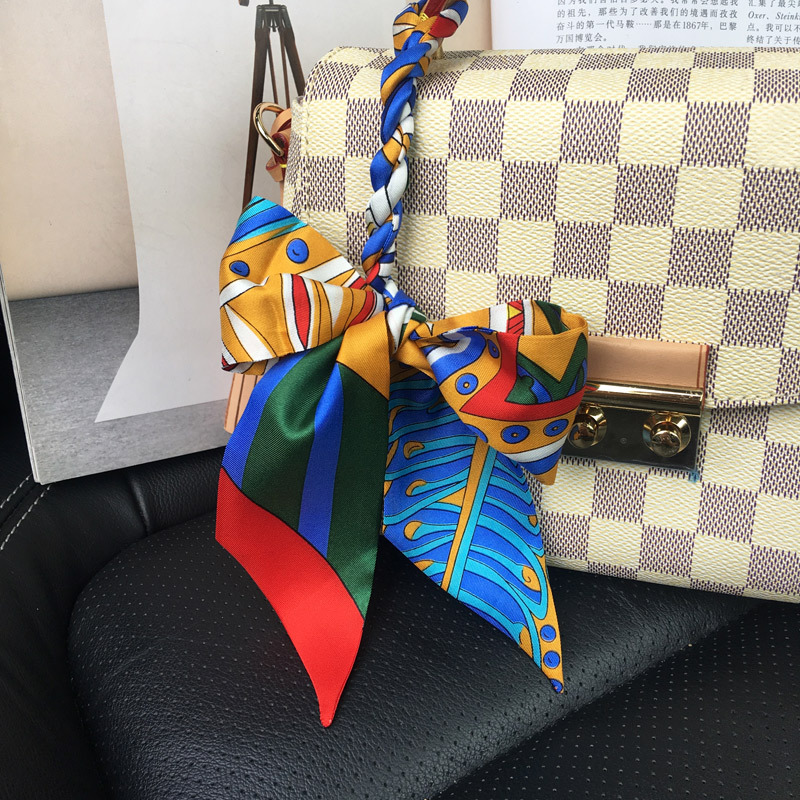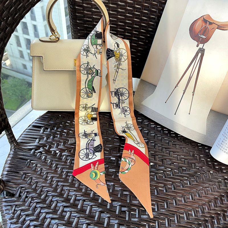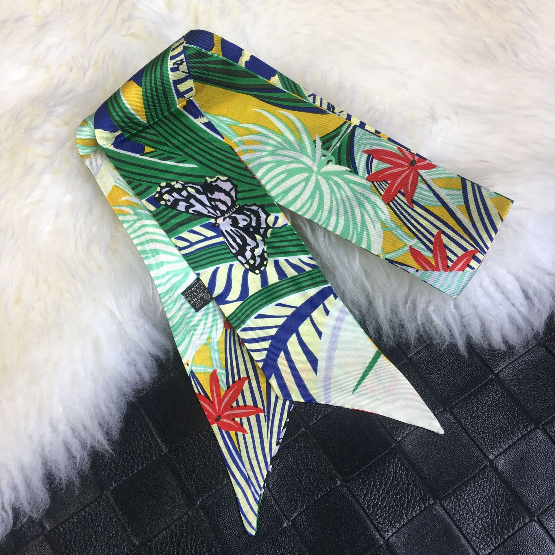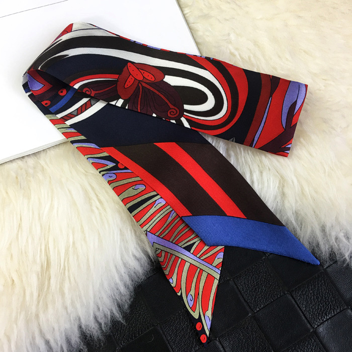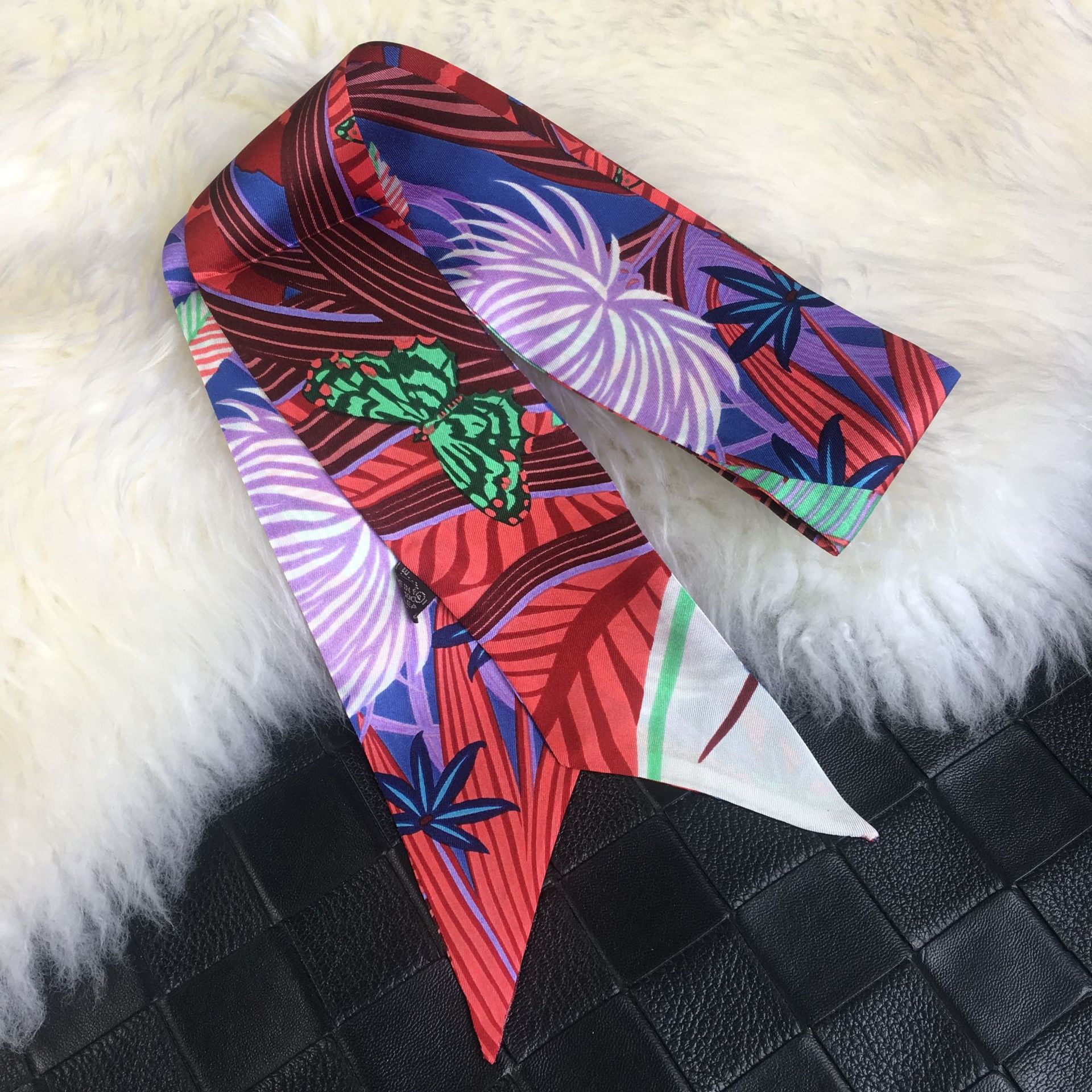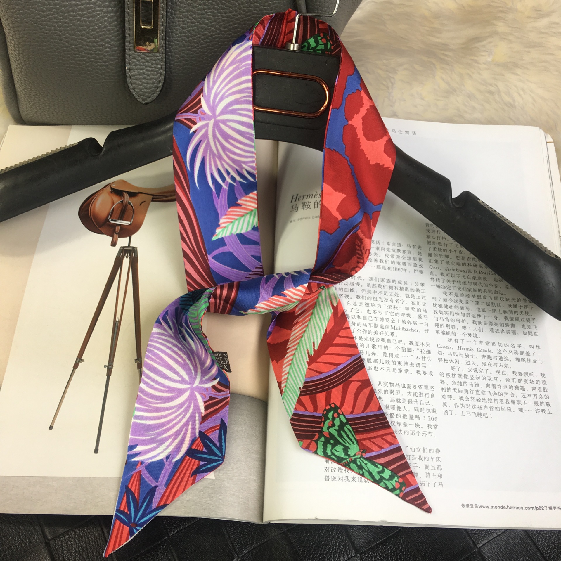 새로운 스타일 실크 테이프 뽕나무 실크 틸트 더블 레이어 실크 스카프 작은 리본 장식 스카프 여성 헤어 밴드 멀티 컬러