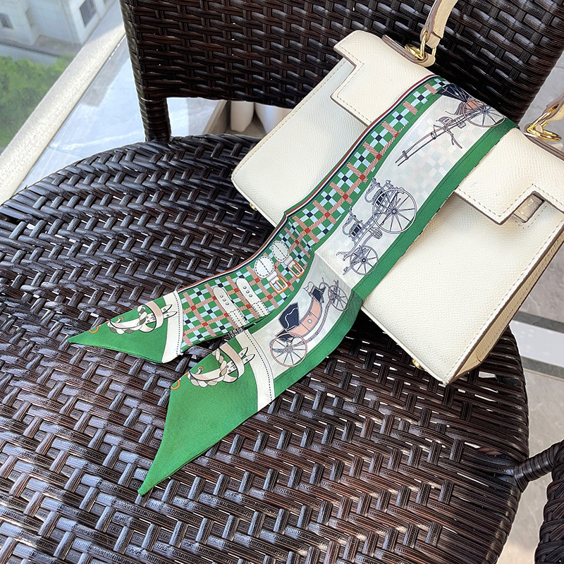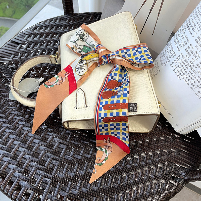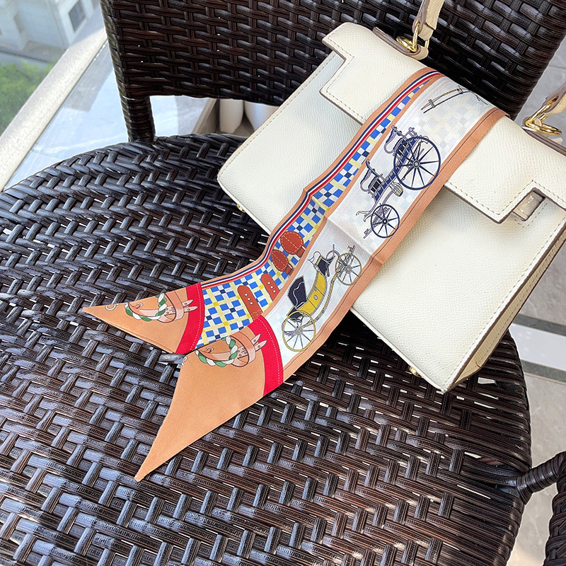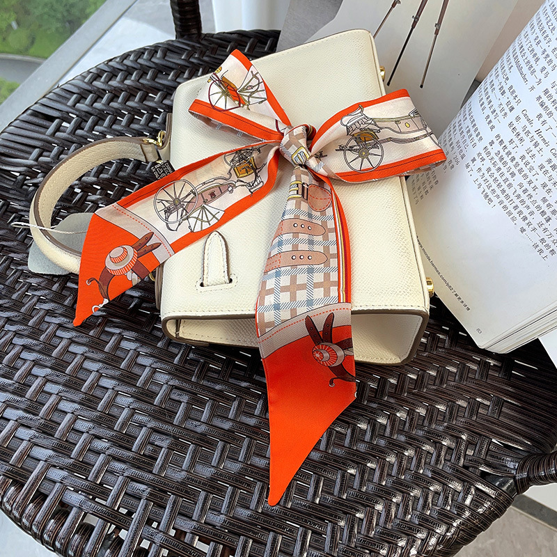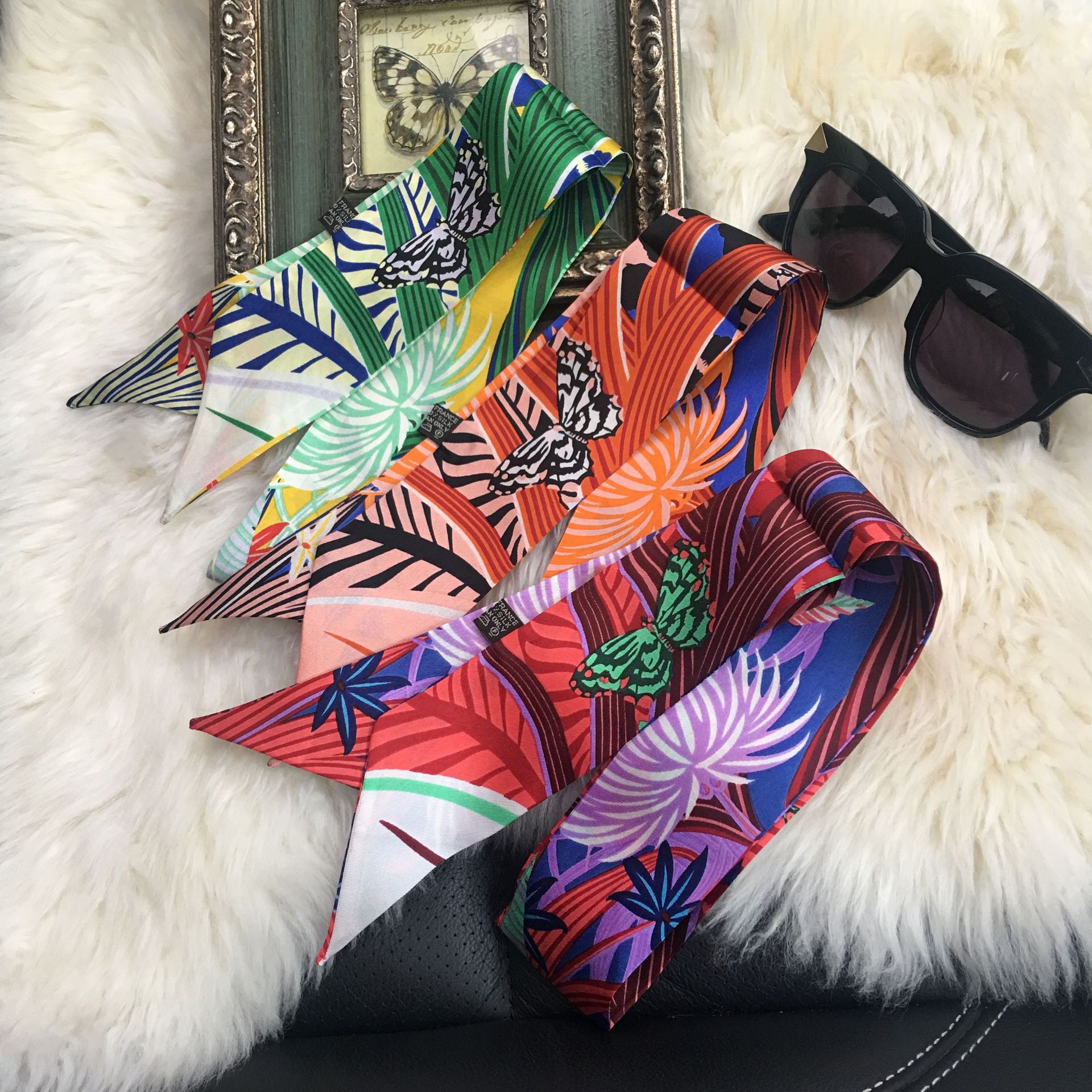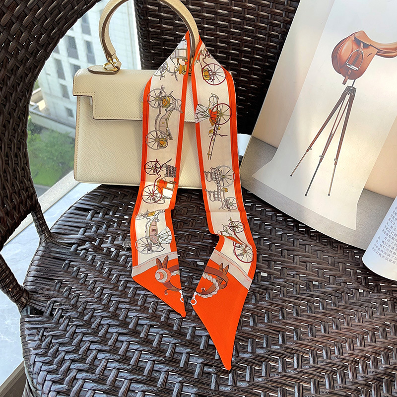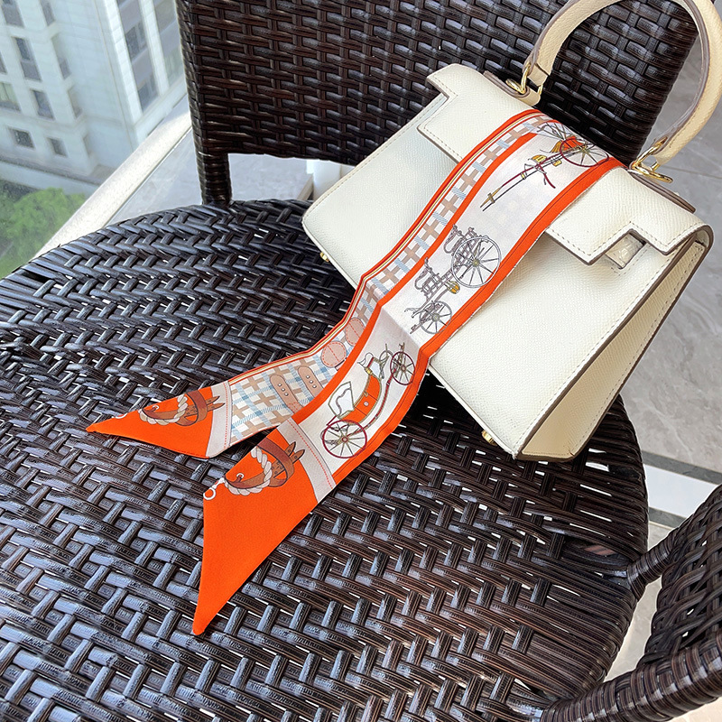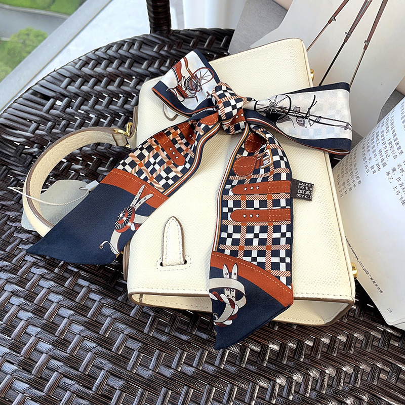 새로운 스타일 실크 테이프 뽕나무 실크 틸트 더블 레이어 실크 스카프 작은 리본 장식 스카프 여성 헤어 밴드 멀티 컬러