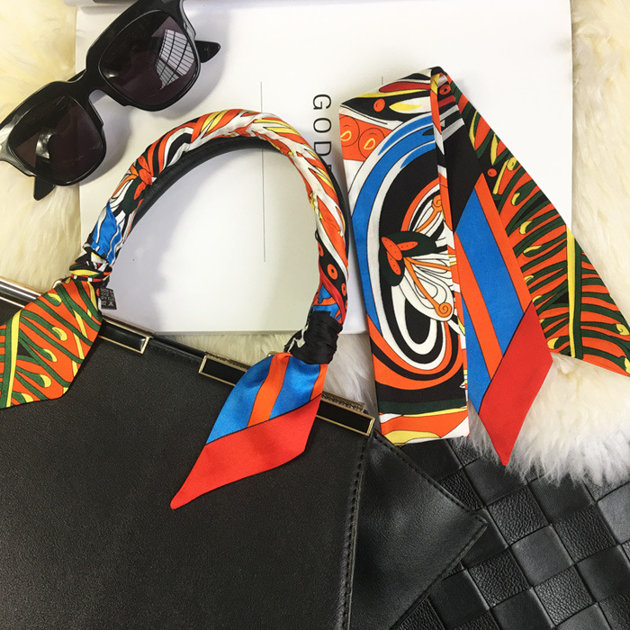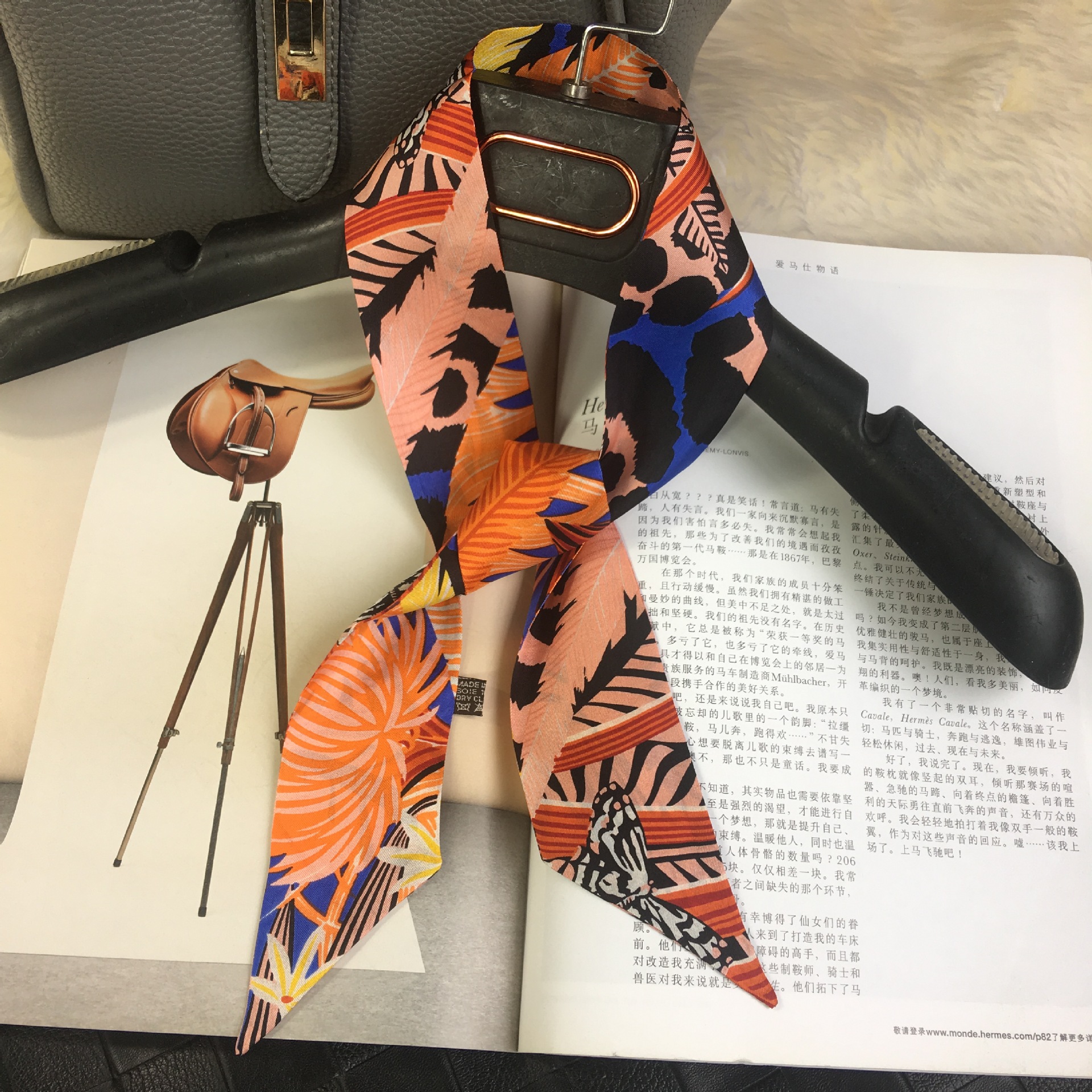 새로운 스타일 실크 테이프 뽕나무 실크 틸트 더블 레이어 실크 스카프 작은 리본 장식 스카프 여성 헤어 밴드 멀티 컬러스토어 가기