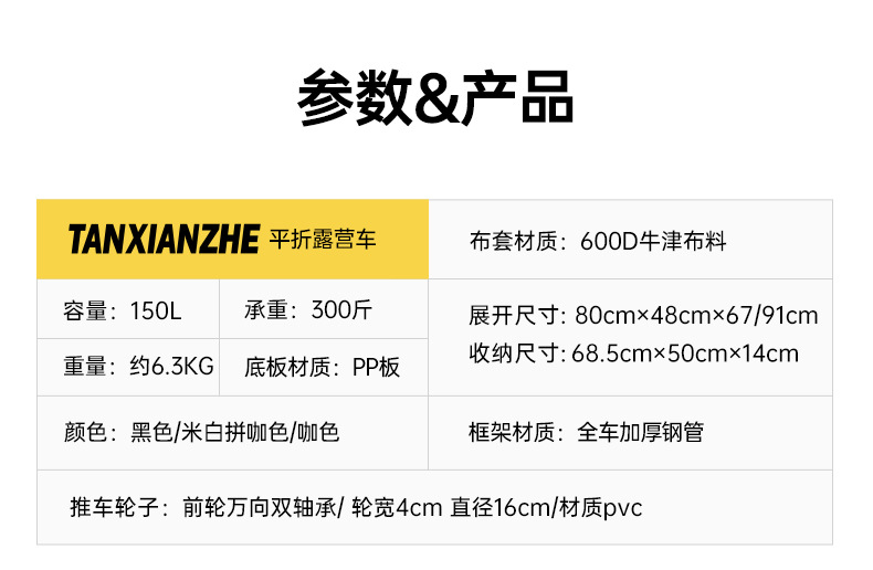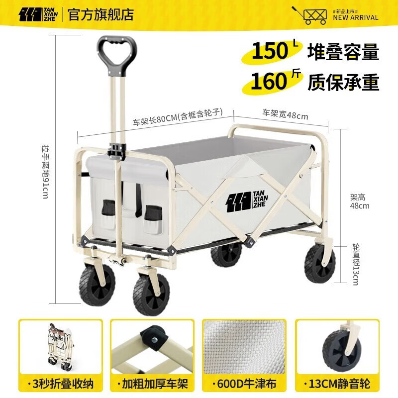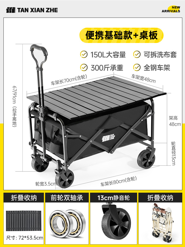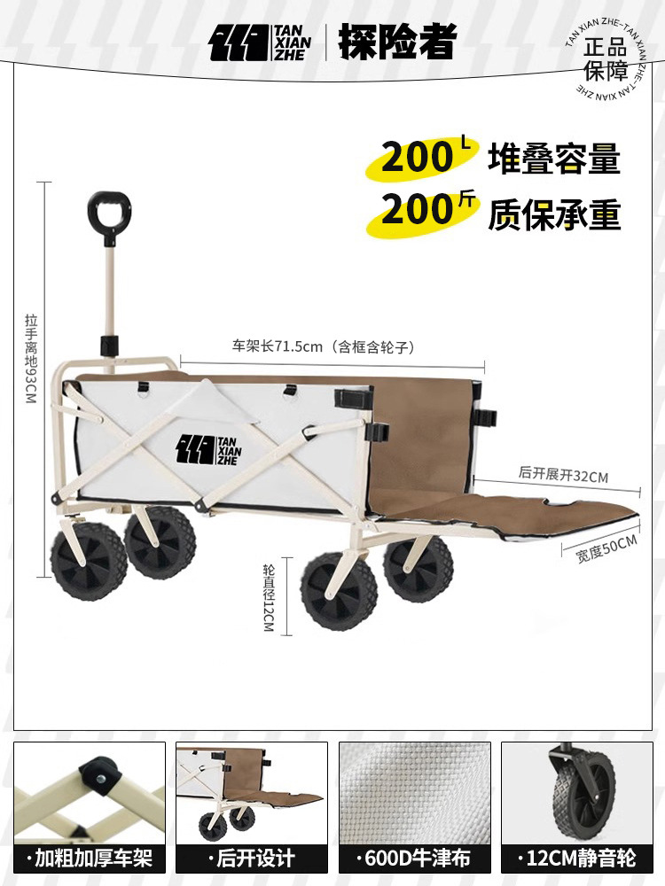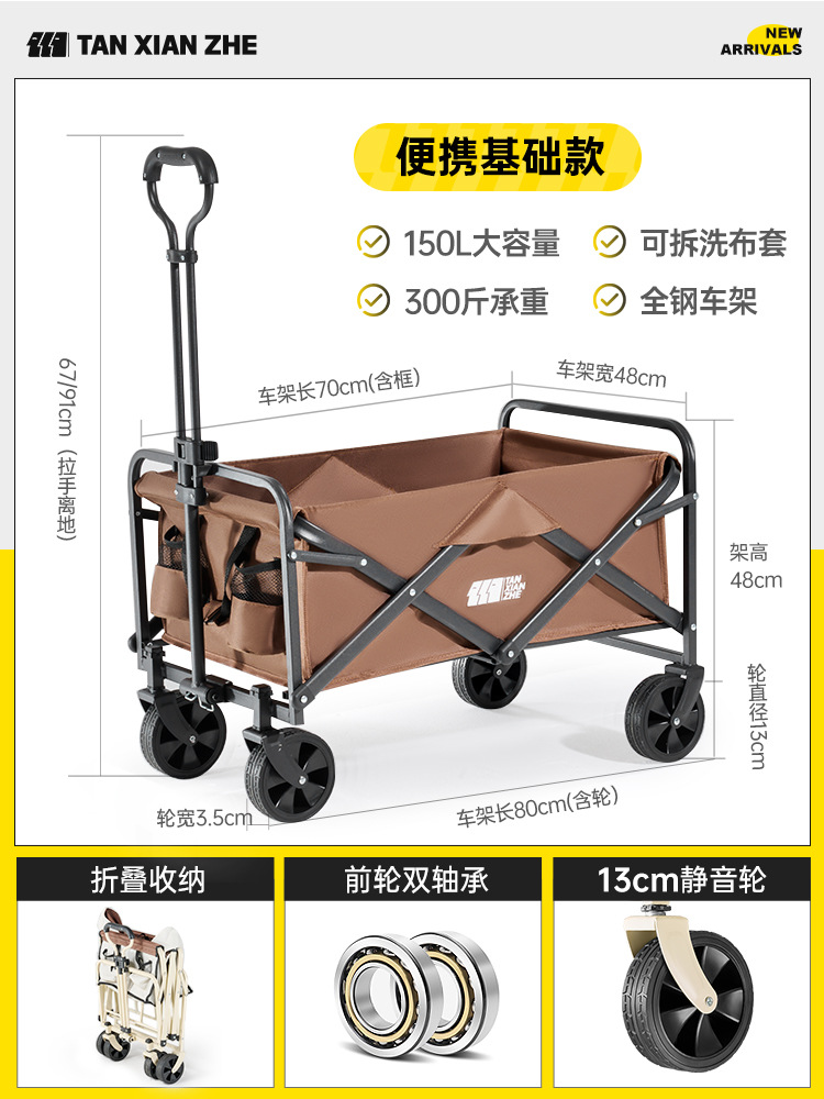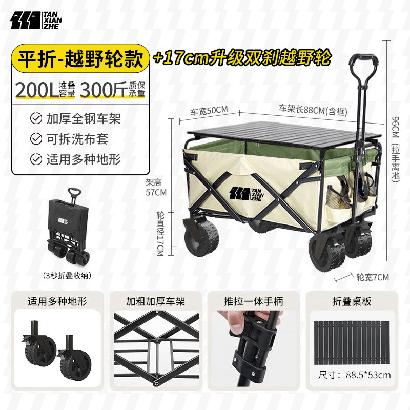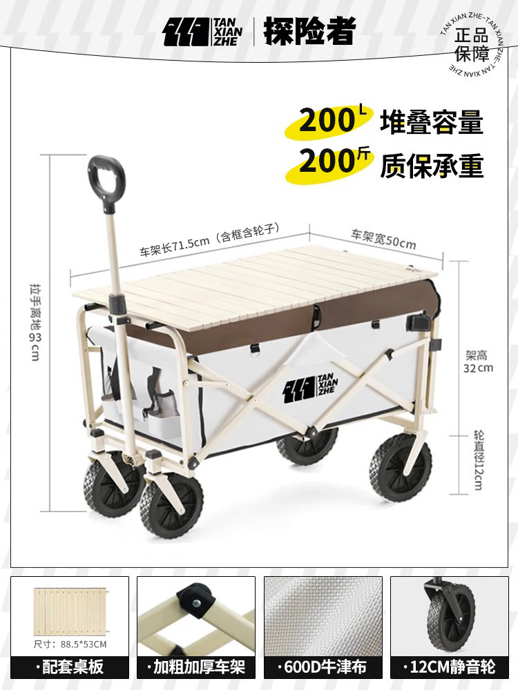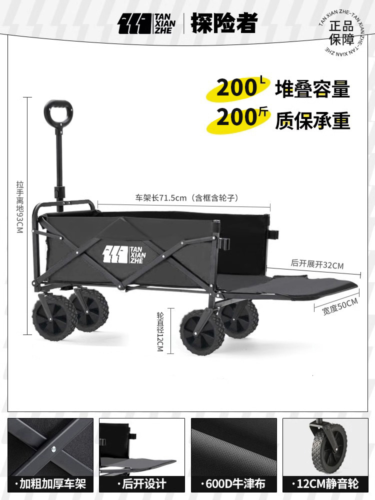 탐험가 캠핑 자동차 트롤리 야외 접이식 피크닉 자동차 캠핑 핸드 카트 여행 대형 캠프 자동차 트레일러