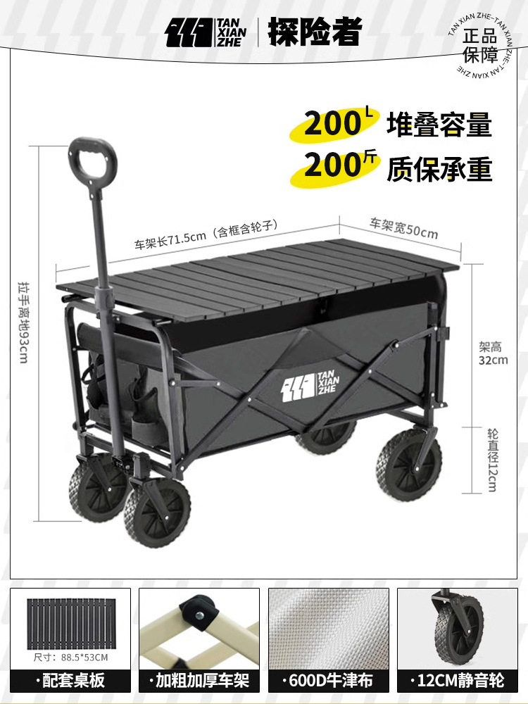 탐험가 캠핑 자동차 트롤리 야외 접이식 피크닉 자동차 캠핑 핸드 카트 여행 대형 캠프 자동차 트레일러스토어 가기