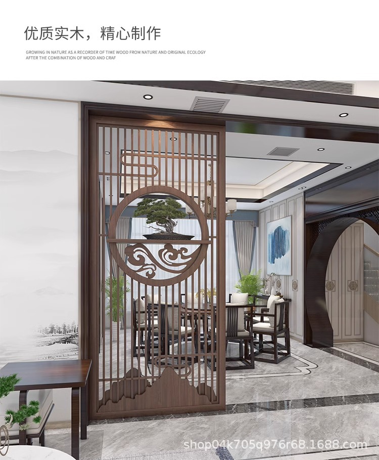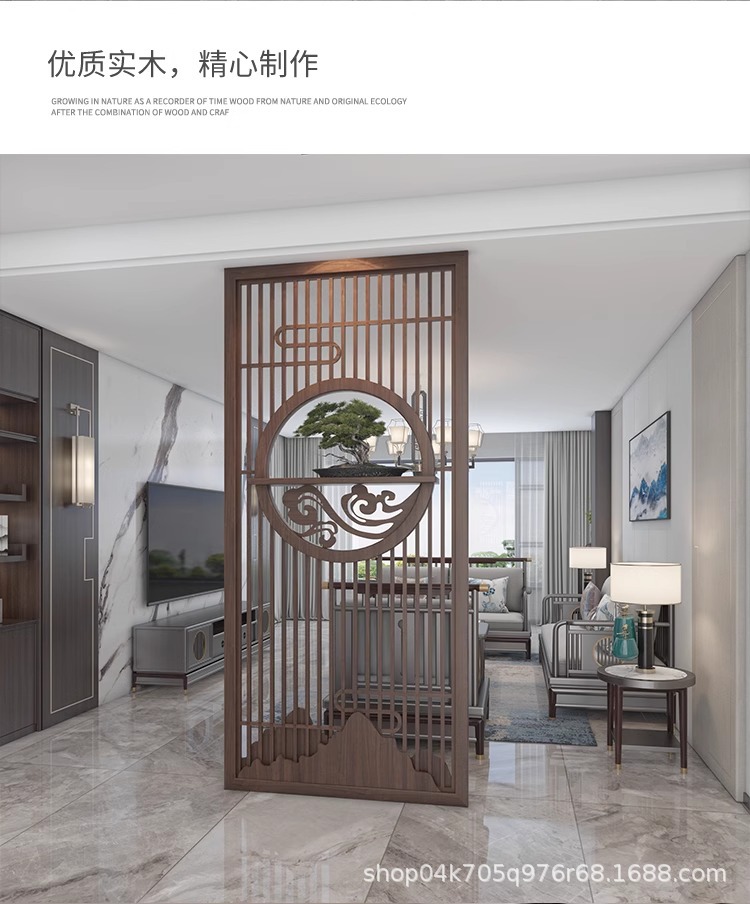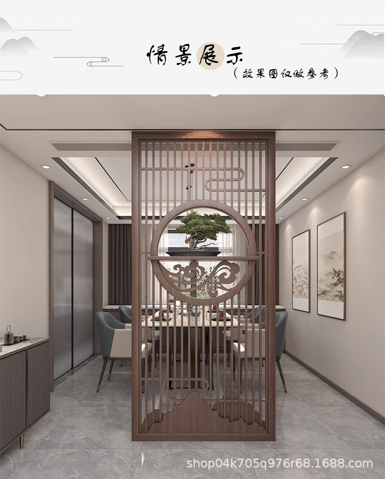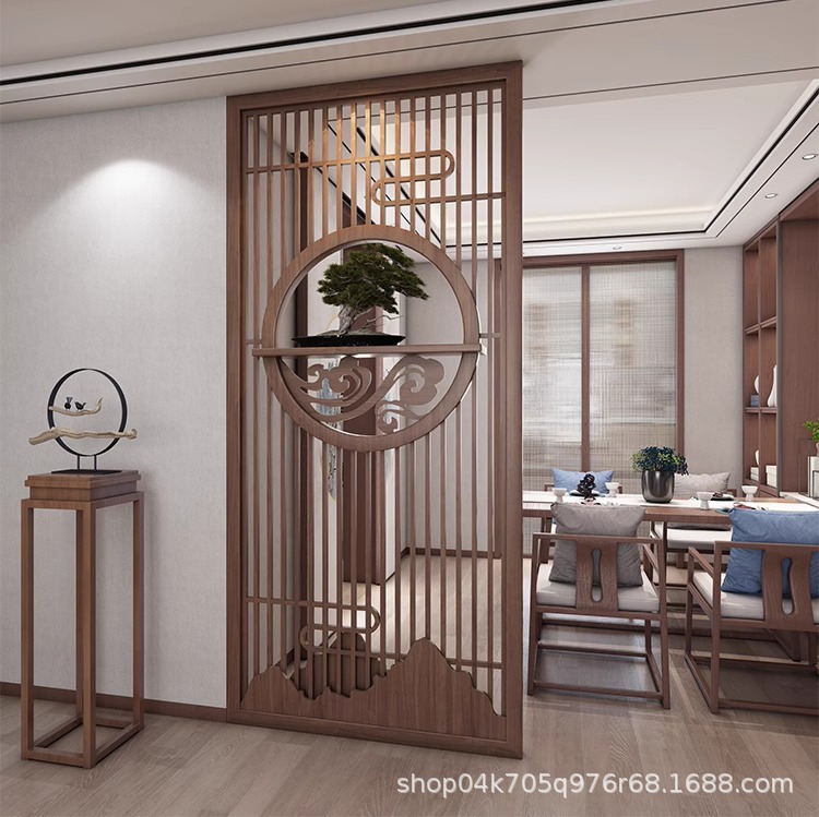 거실 입구 현관 복도 차단 된 좌석 화면 새로운 중국 스타일 화면 파티션 솔리드 우드 그릴 빈 패턴 원사 화가스토어 가기