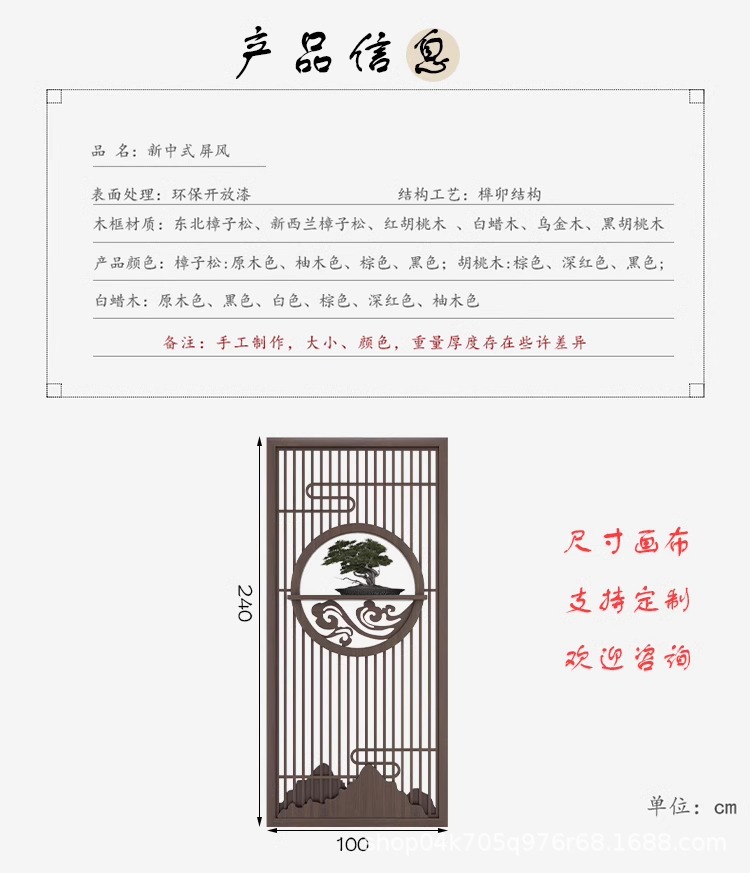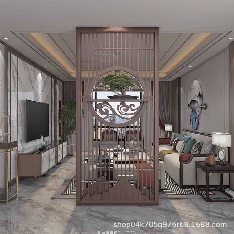 거실 입구 현관 복도 차단 된 좌석 화면 새로운 중국 스타일 화면 파티션 솔리드 우드 그릴 빈 패턴 원사 화가