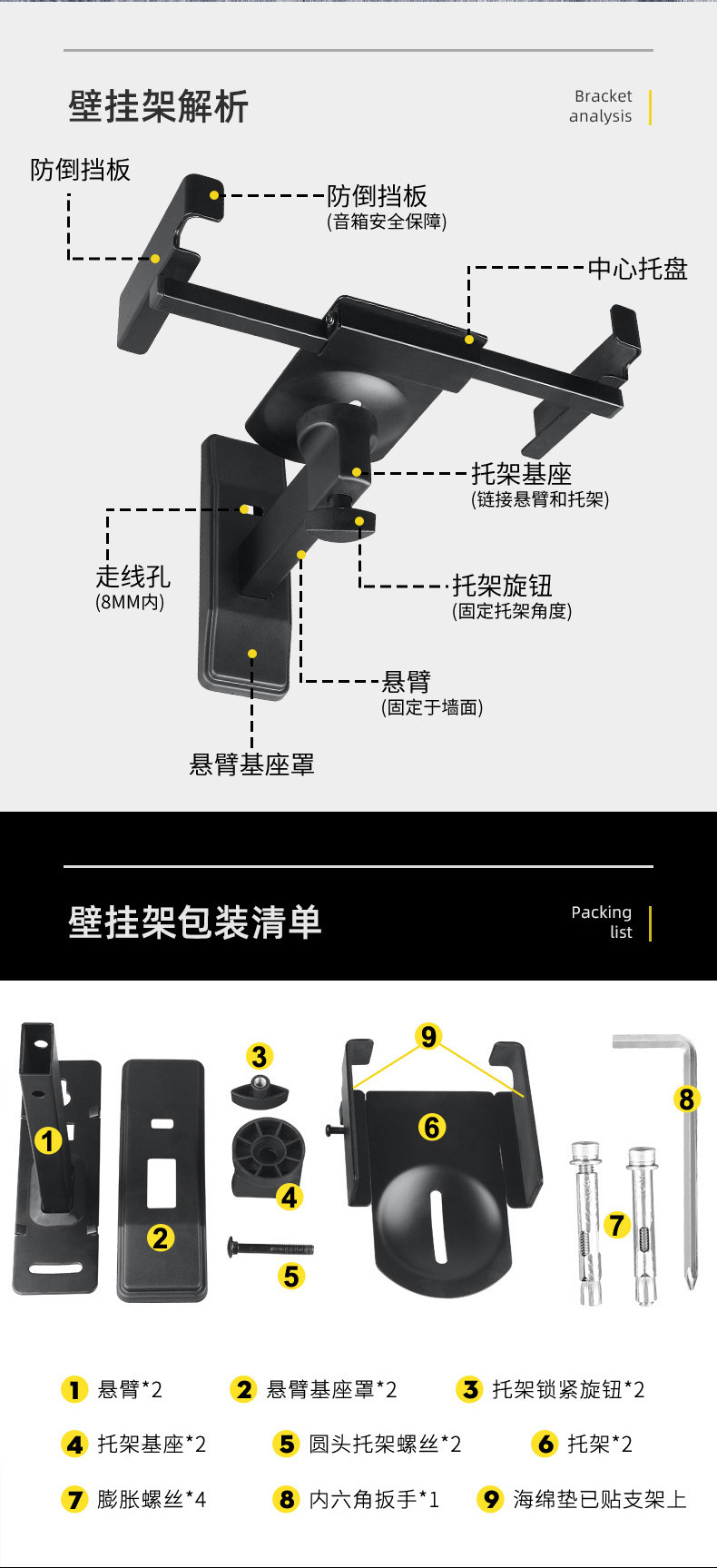 LKT-383 스피커 벽 마운트 서라운드 모니터 HIFI 데스크 녹화 조정 가능한 각도 오디오 브래킷스토어 가기