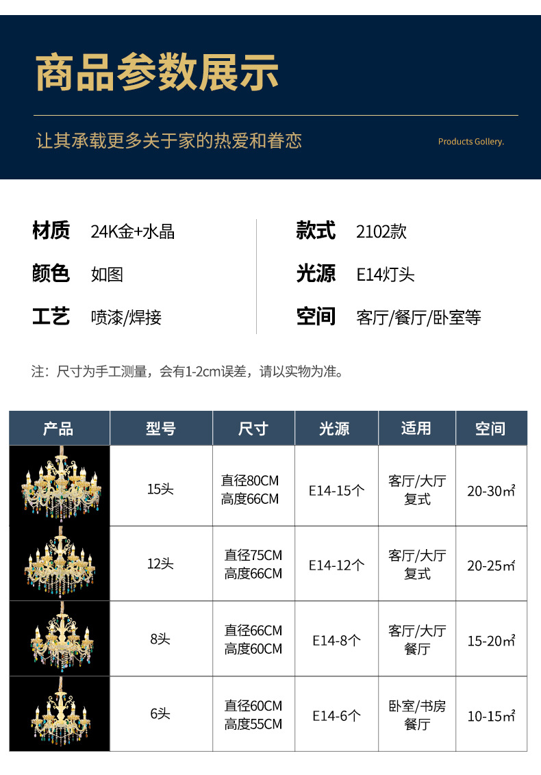 • 크리스탈 샹들리에 - 12개 헤드 - 3색 디밍