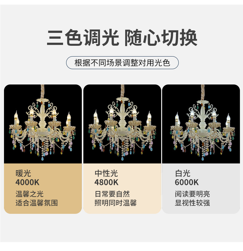 • 크리스탈 샹들리에 - 6개 헤드 - 3색 디밍