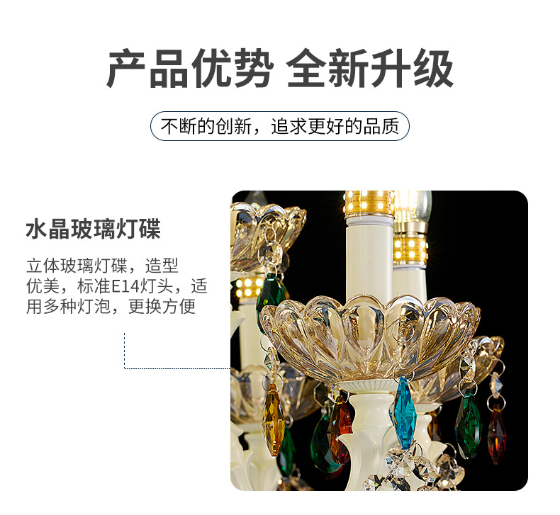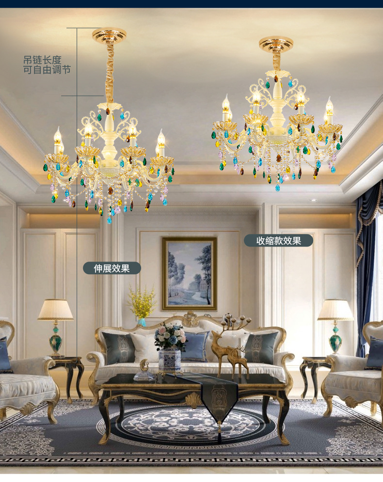 유럽 스타일의 샹들리에 거실 램프 현대 간단한 촛불 크리스탈 램프 간단한 유럽 럭셔리 대기 침실 다이닝 룸 램프