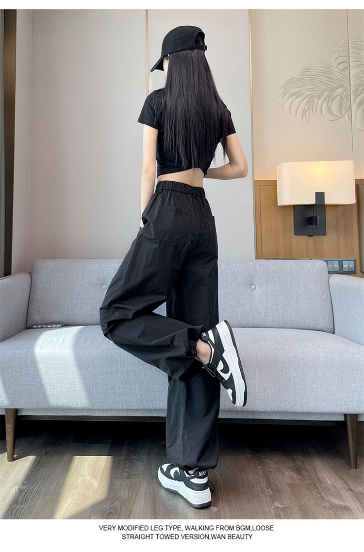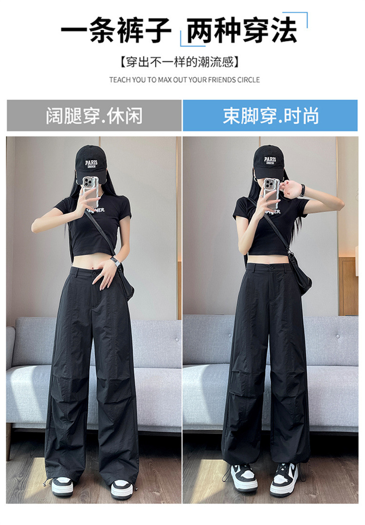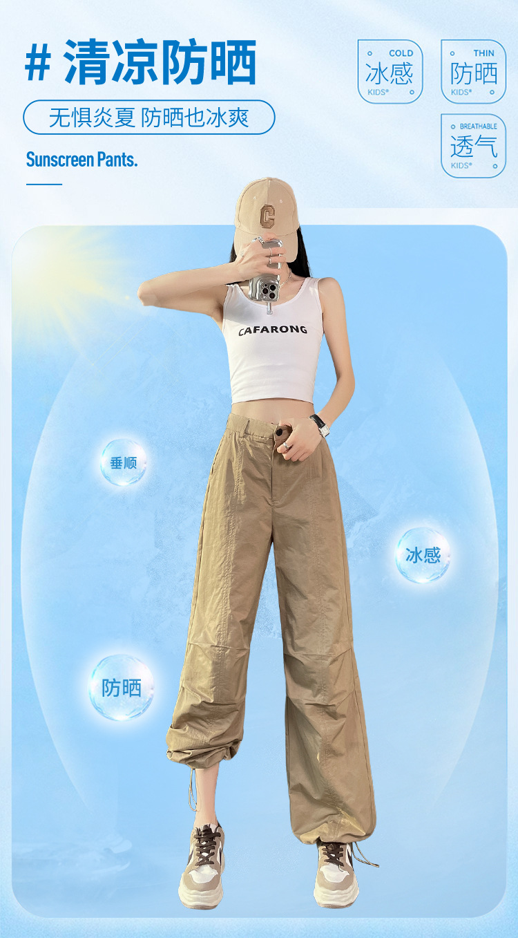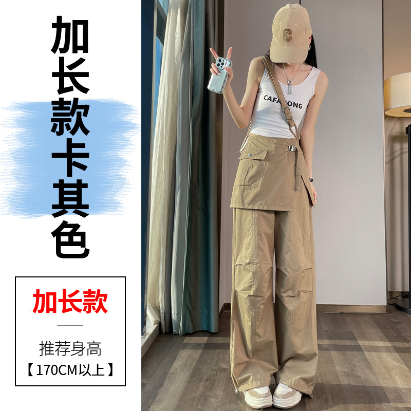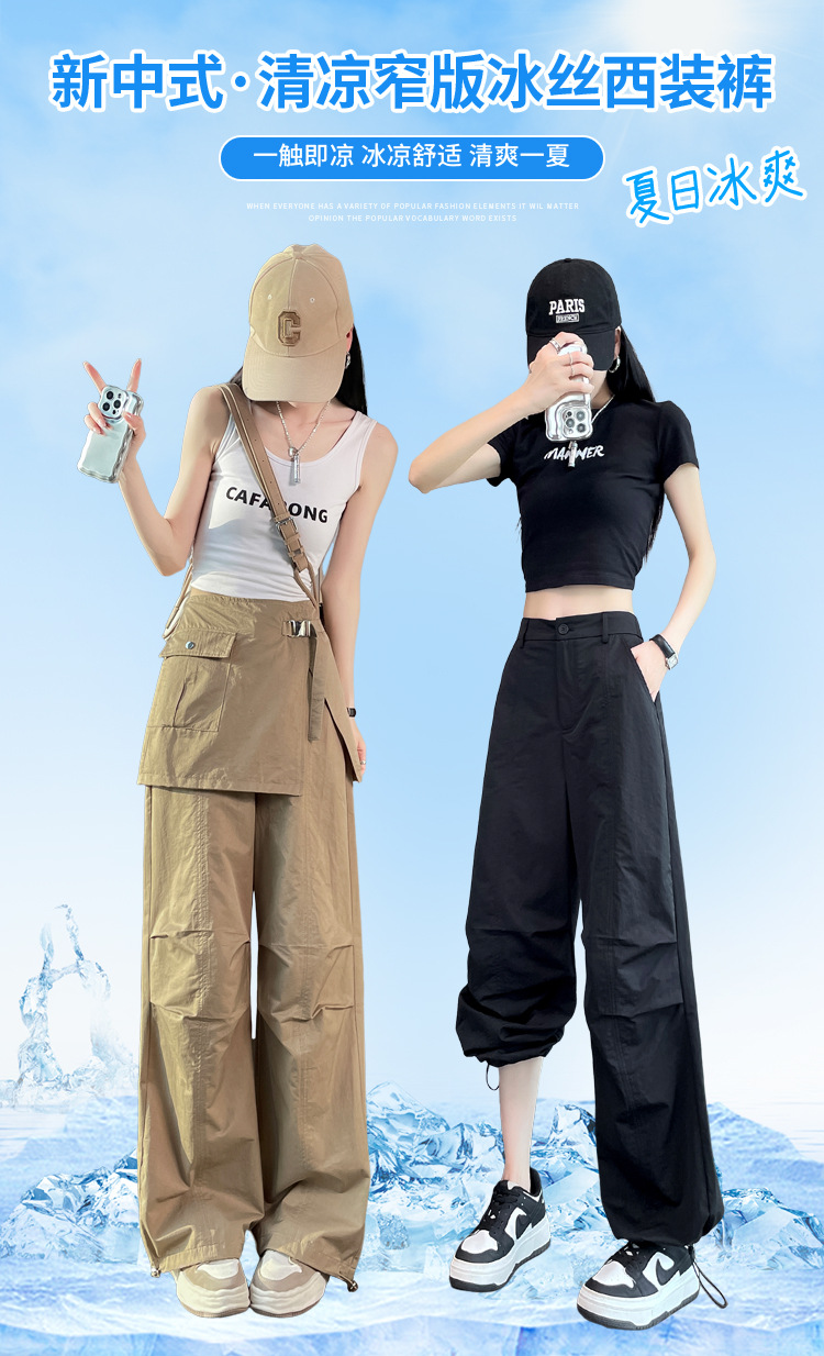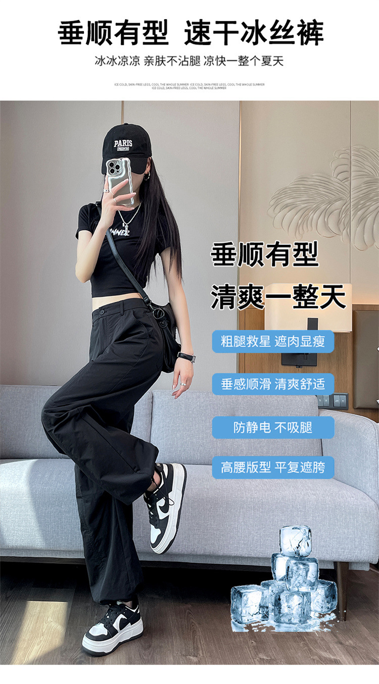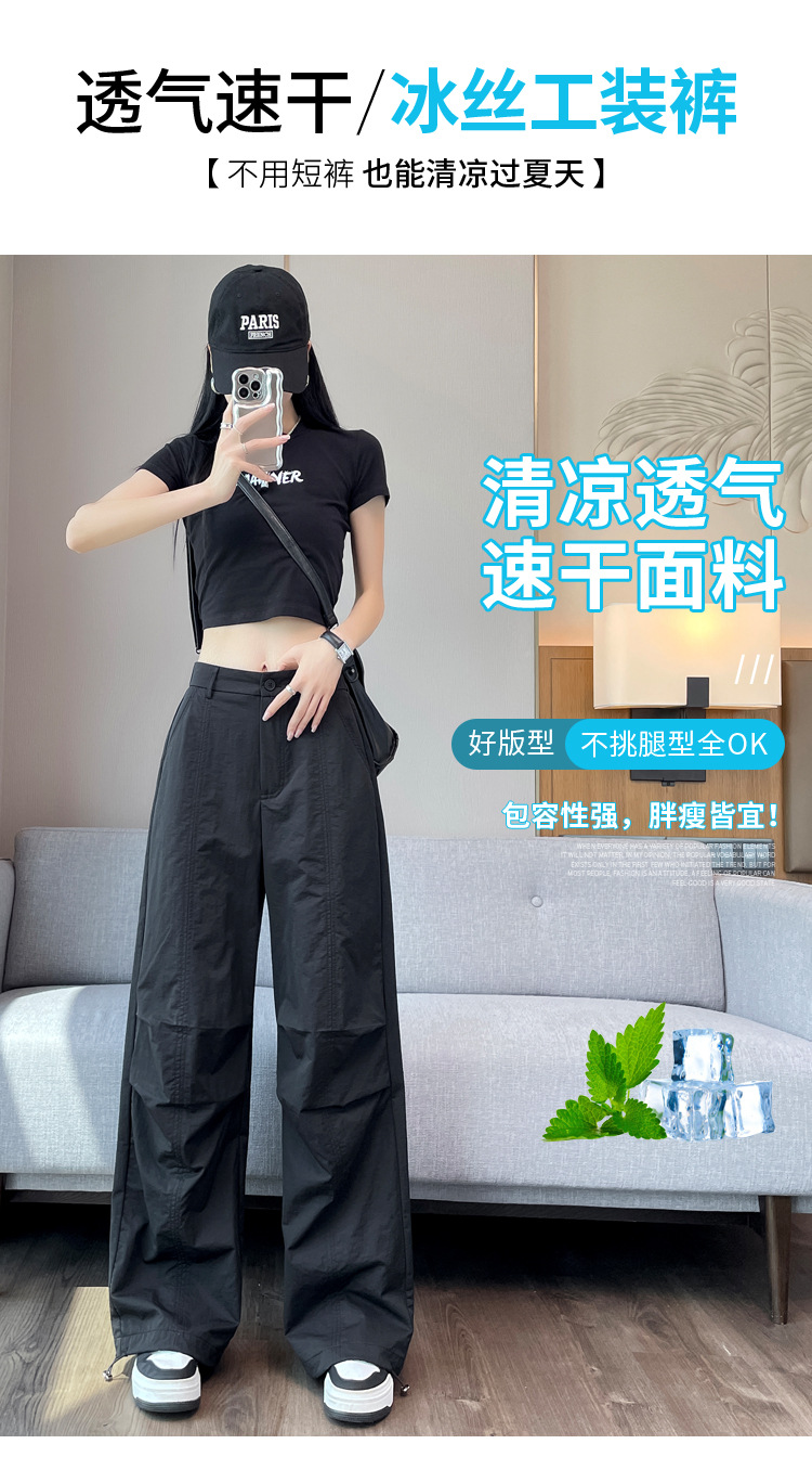 여성용 아이스 실크 워크웨어 팬츠, 2026년 여름 신상, 미국식 디자인, 루즈핏 와이드 레그 캐주얼 학생 스포츠 등산 바지스토어 가기