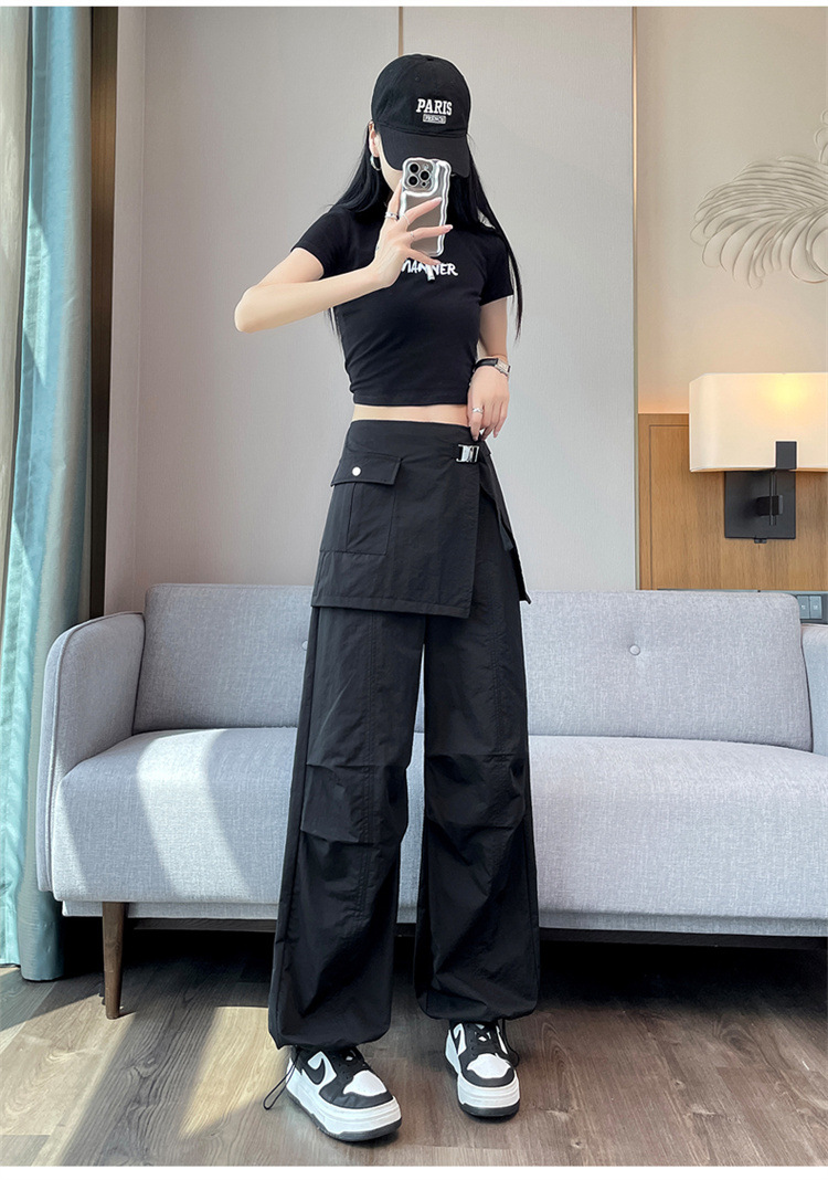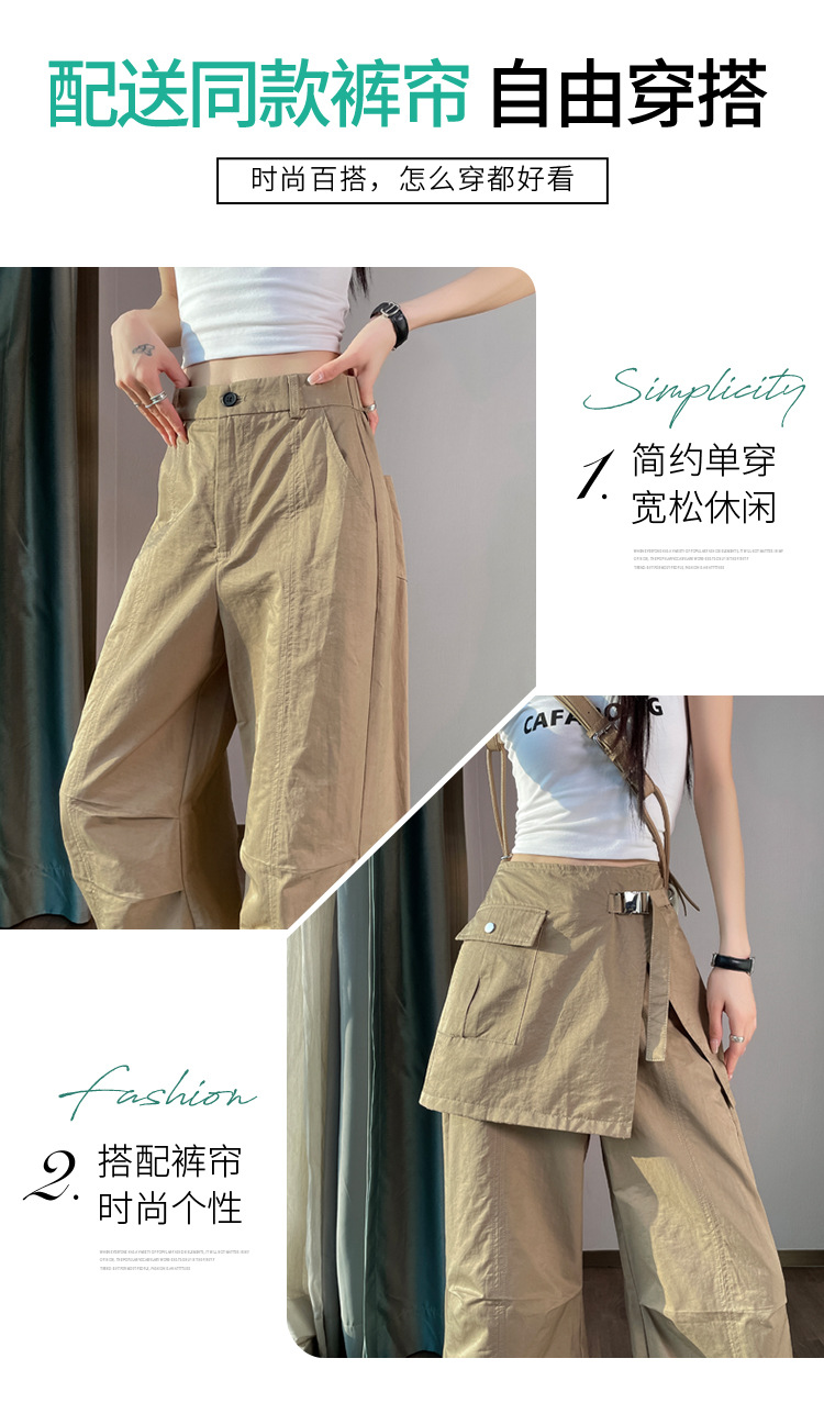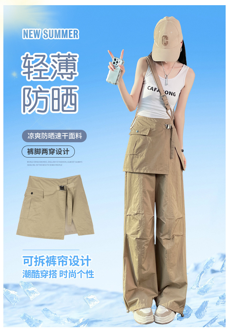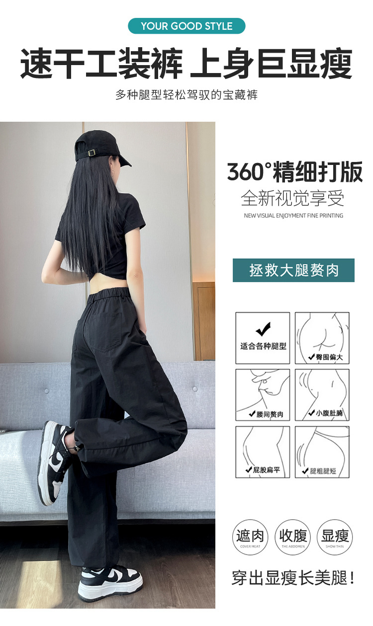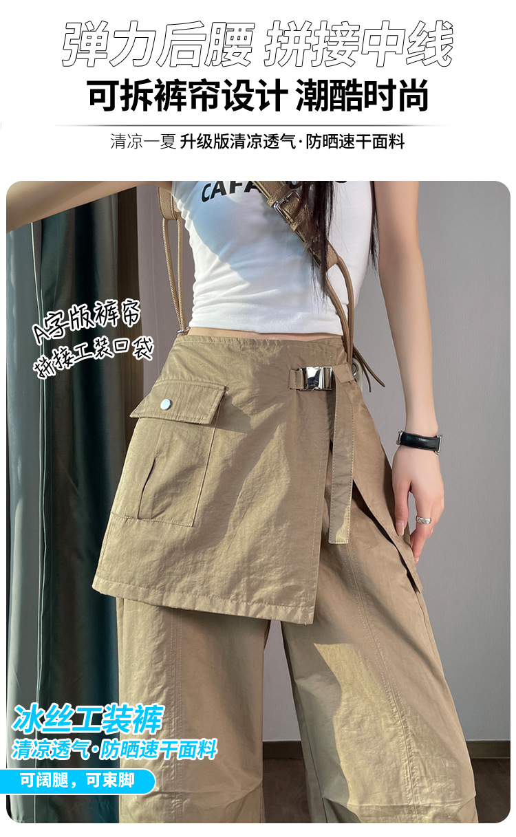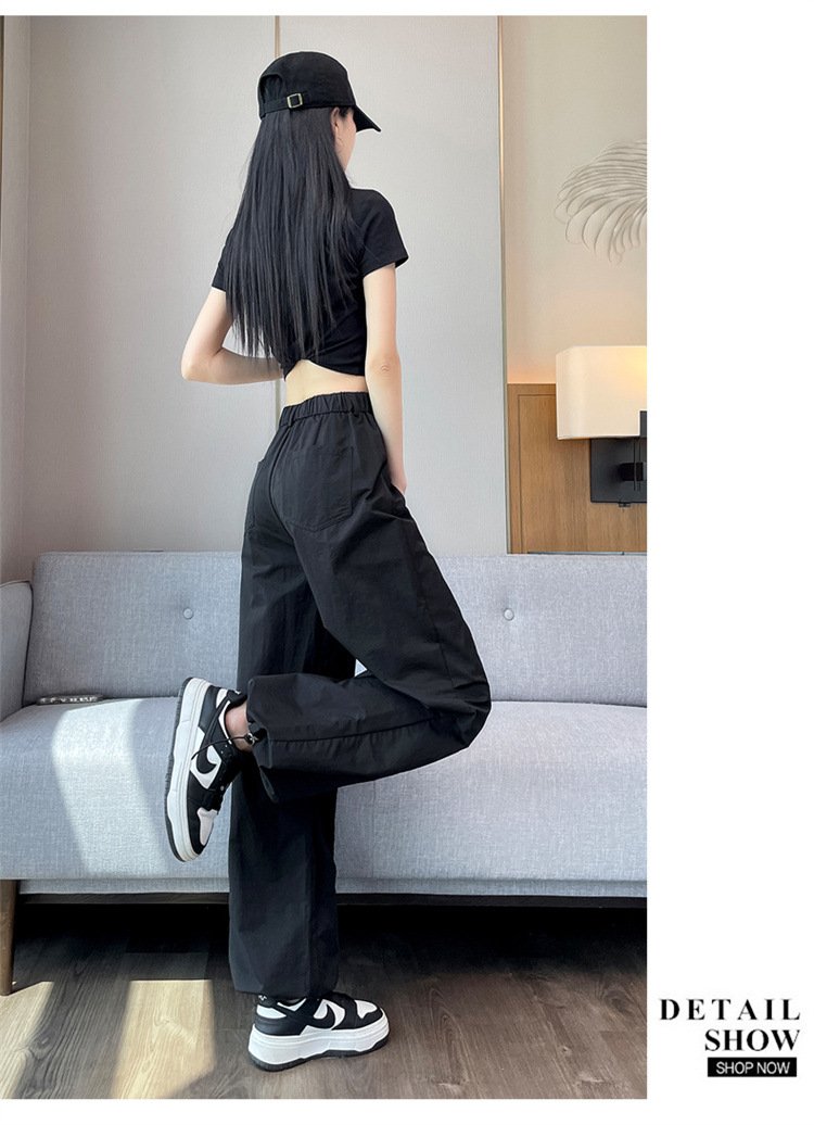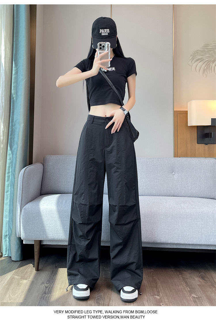 여성용 아이스 실크 워크웨어 팬츠, 2026년 여름 신상, 미국식 디자인, 루즈핏 와이드 레그 캐주얼 학생 스포츠 등산 바지스토어 가기