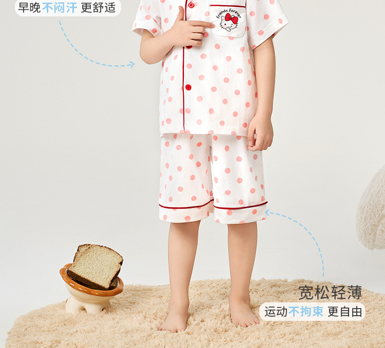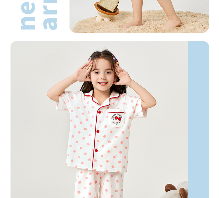 실크 버드 여름 순수한면 카디건 파자마 소녀 카디건 파자마 세트 어린이 짧은 소매 반바지 옷깃 홈 옷스토어 가기